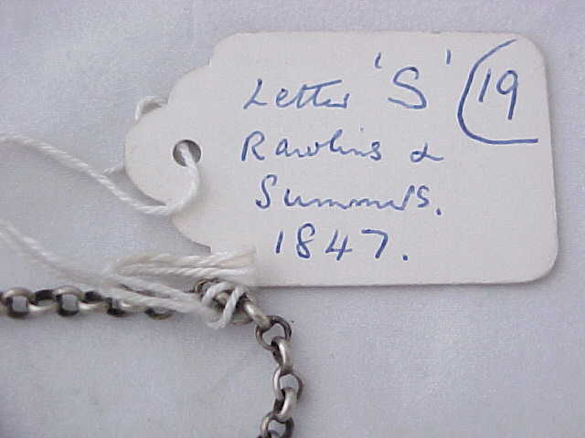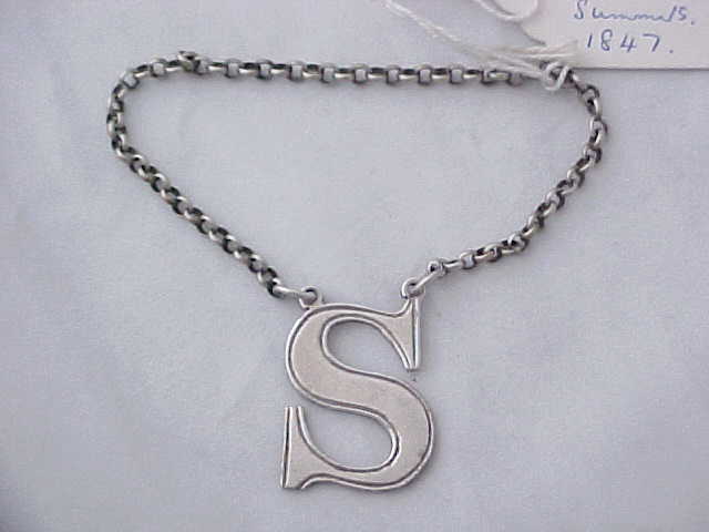 DESCRIPTION | Victorian sterling silver wine label pierced 'S'. Came with a collector's tag attached that I have left in place.