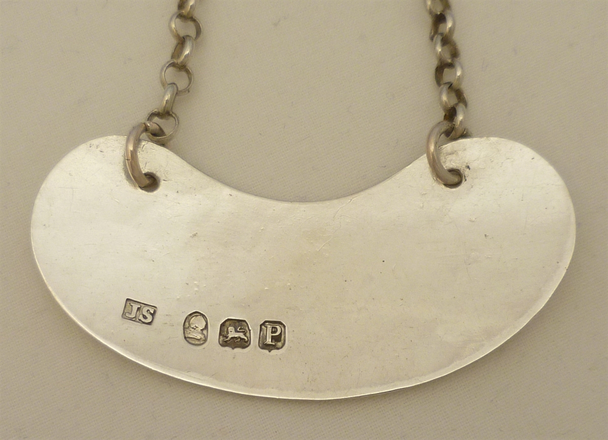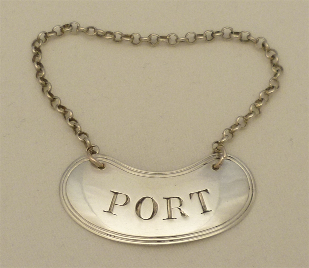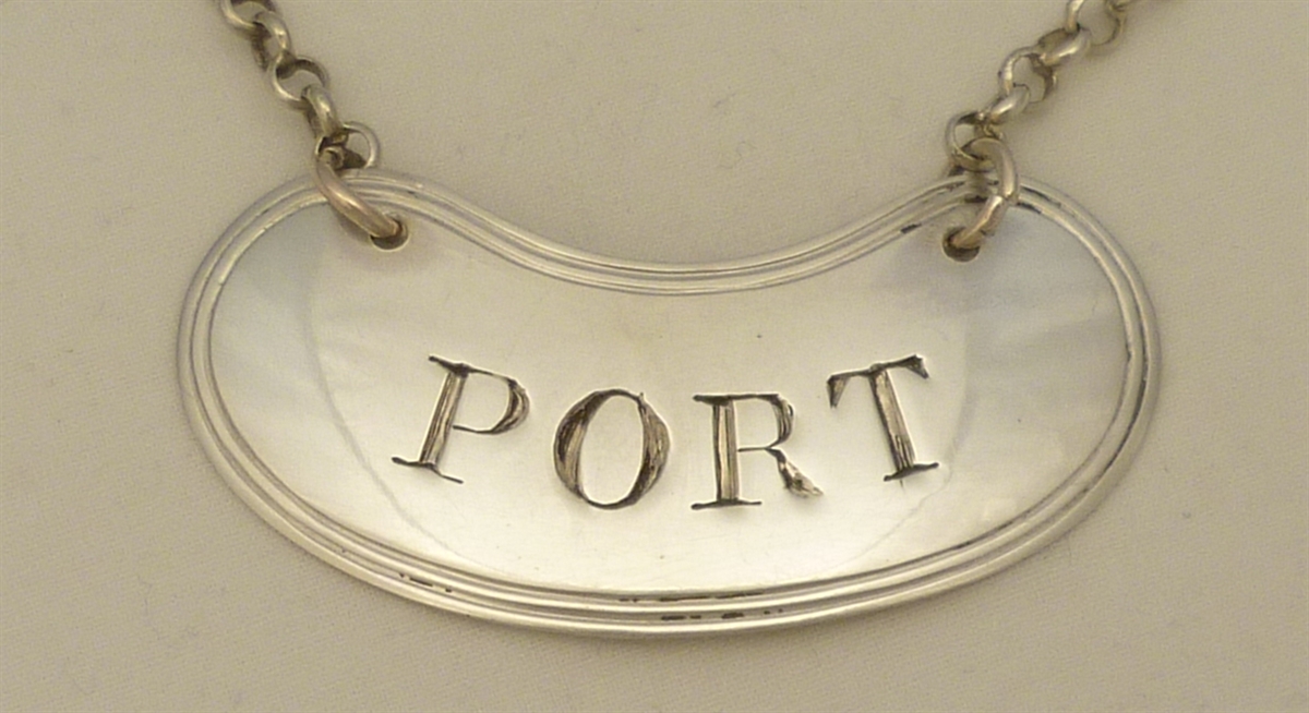 DESCRIPTION | Georgian solid sterling silver 'PORT' wine label with suspension chain. |