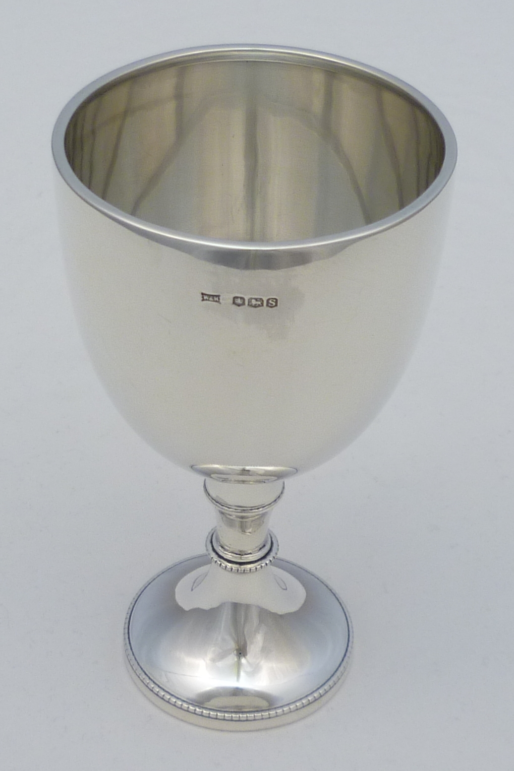 DESCRIPTION | Solid sterling silver wine goblet with simple bead decoration and no engraving or erasure. |