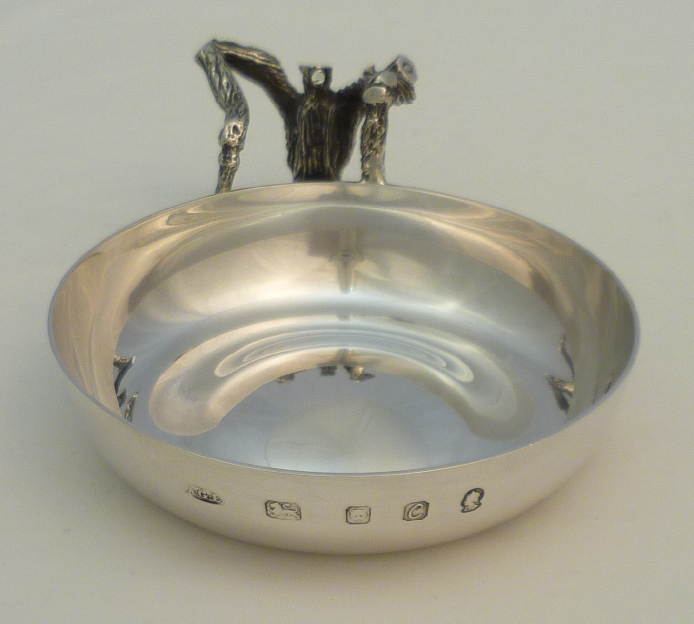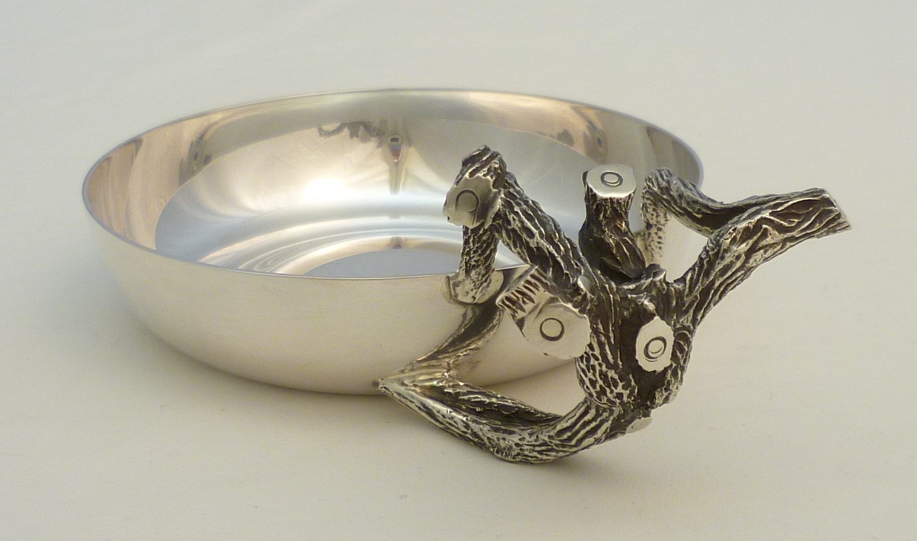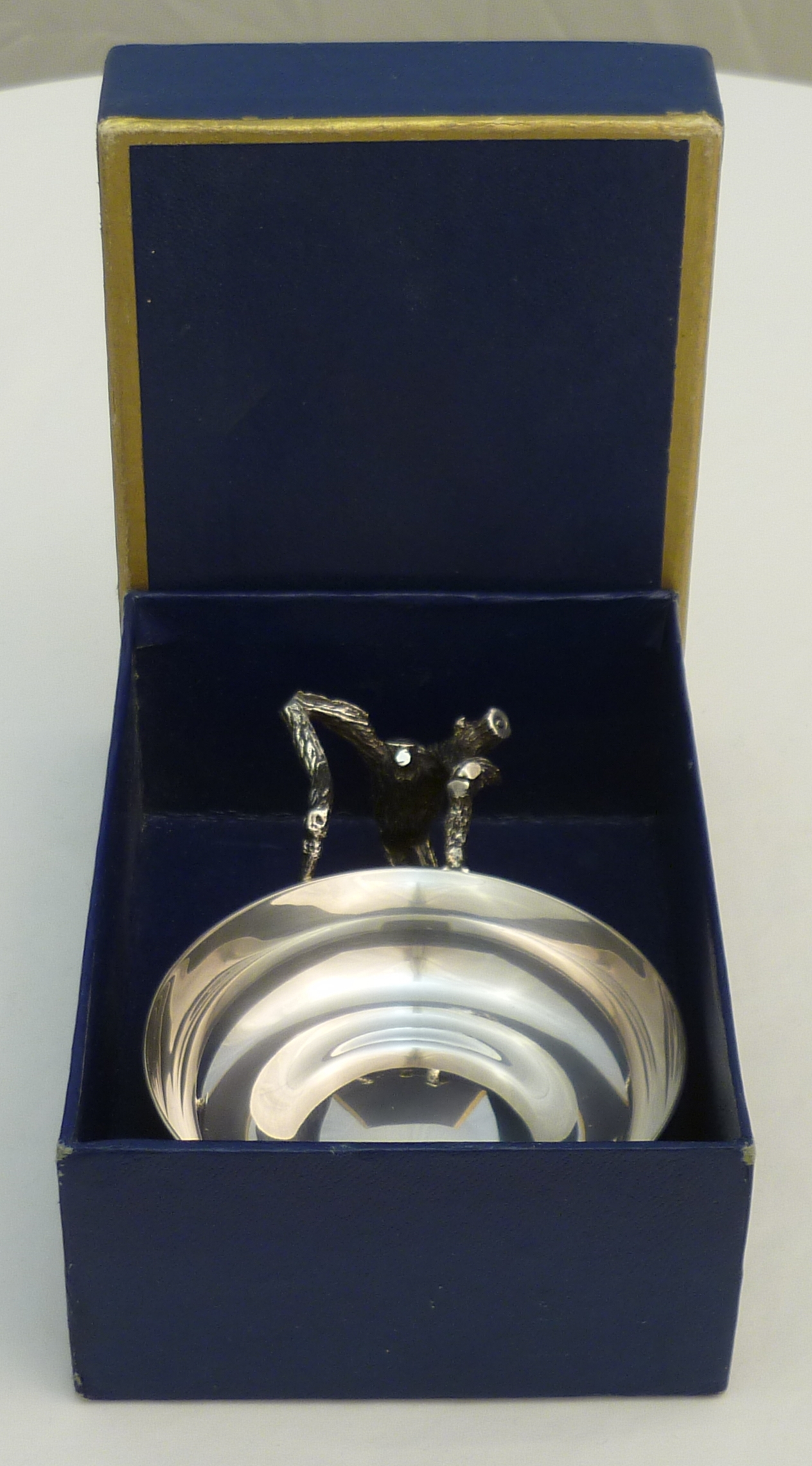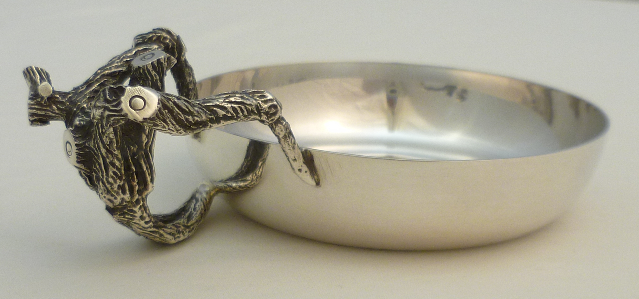DESCRIPTION | Beautiful, high quality solid sterling silver wine taster with naturalistic handle and original box. |