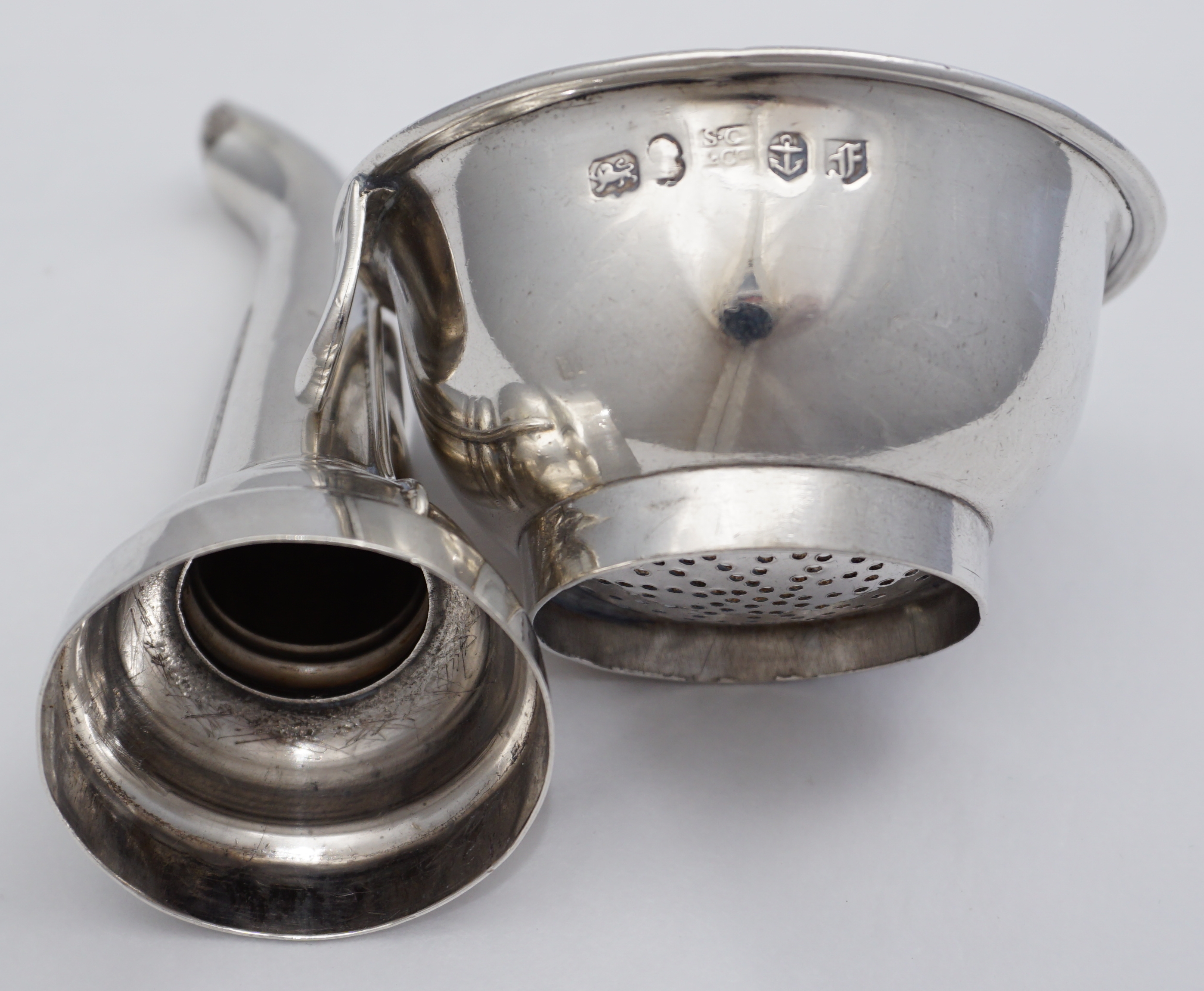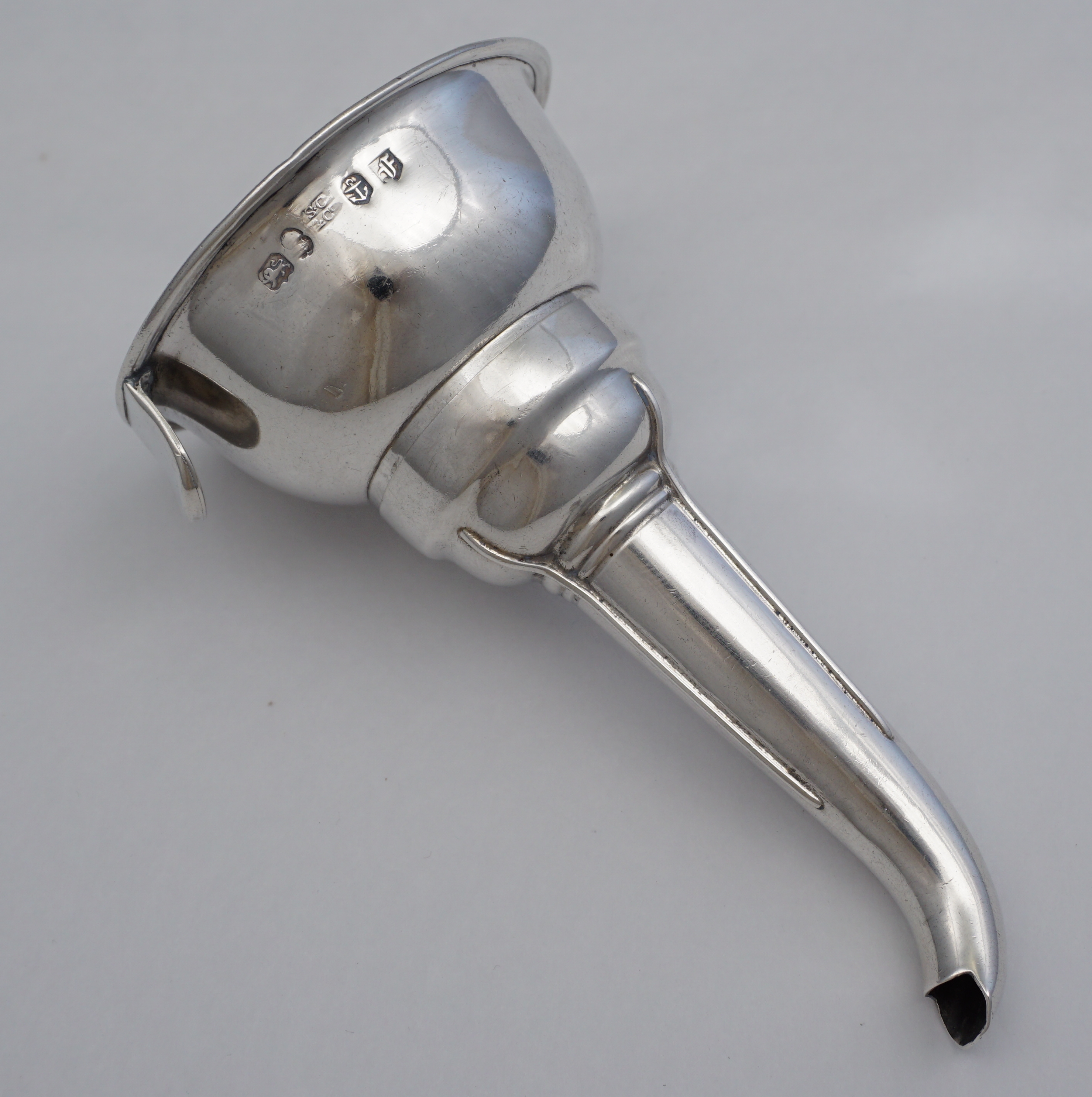 DESCRIPTION | Smaller antique English Georgian solid sterling silver wine funnel. Unusual to be of Birmingham manufacture, I have only had London made examples before. |