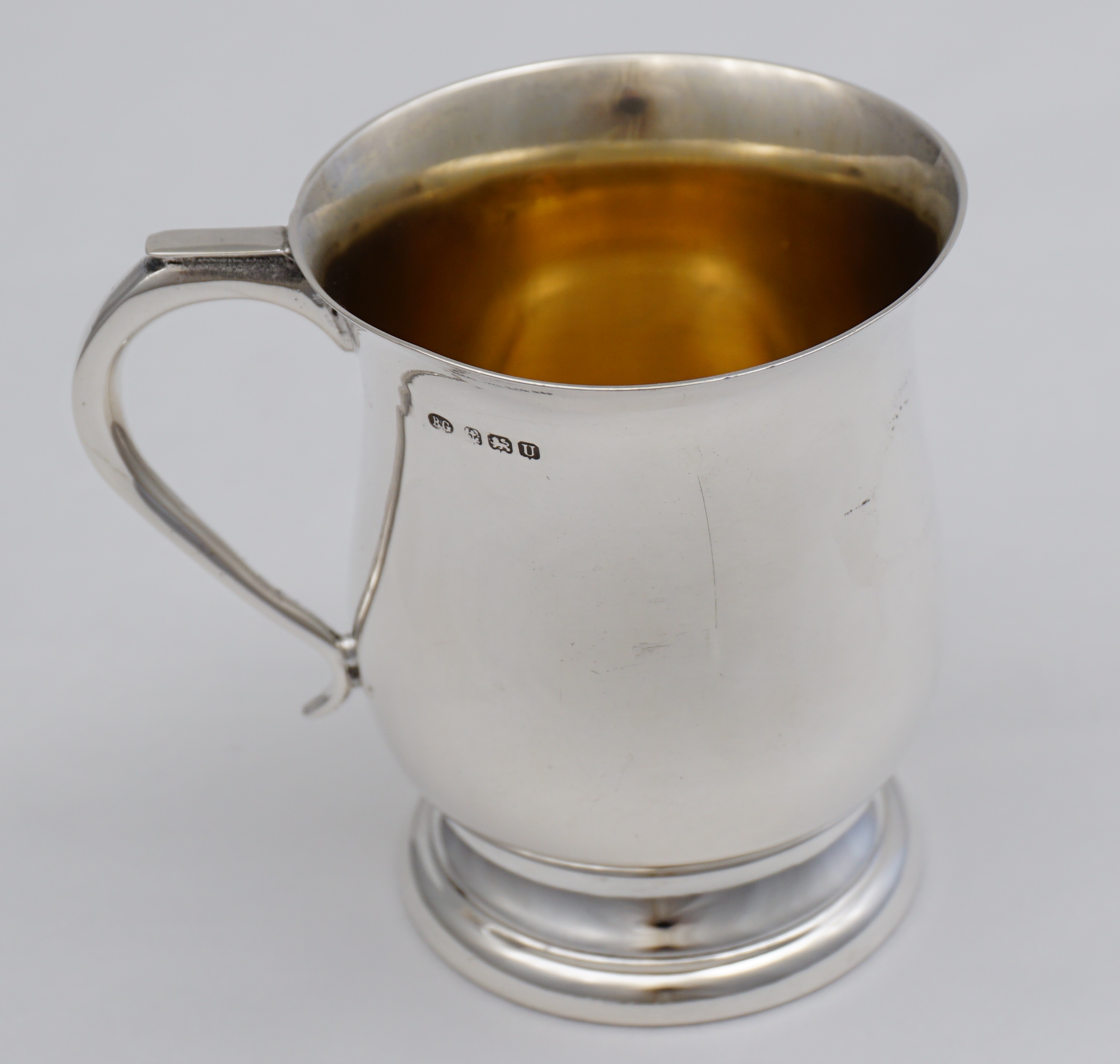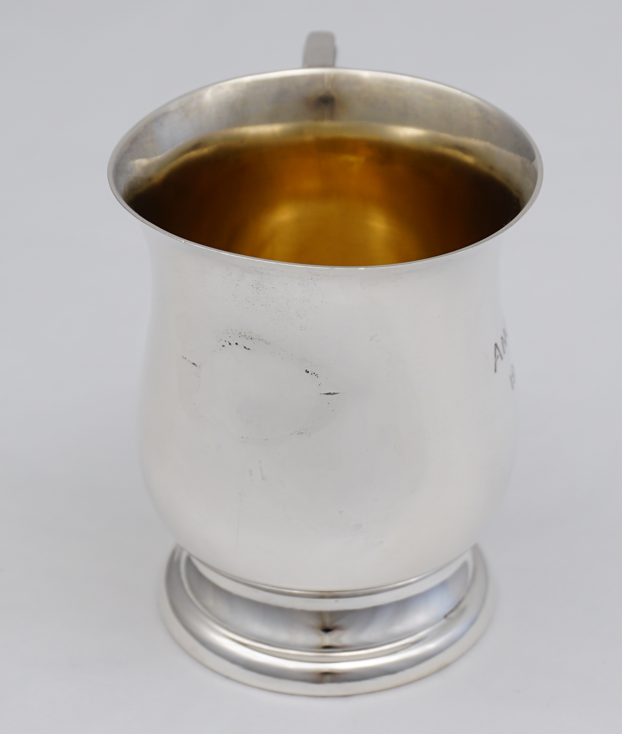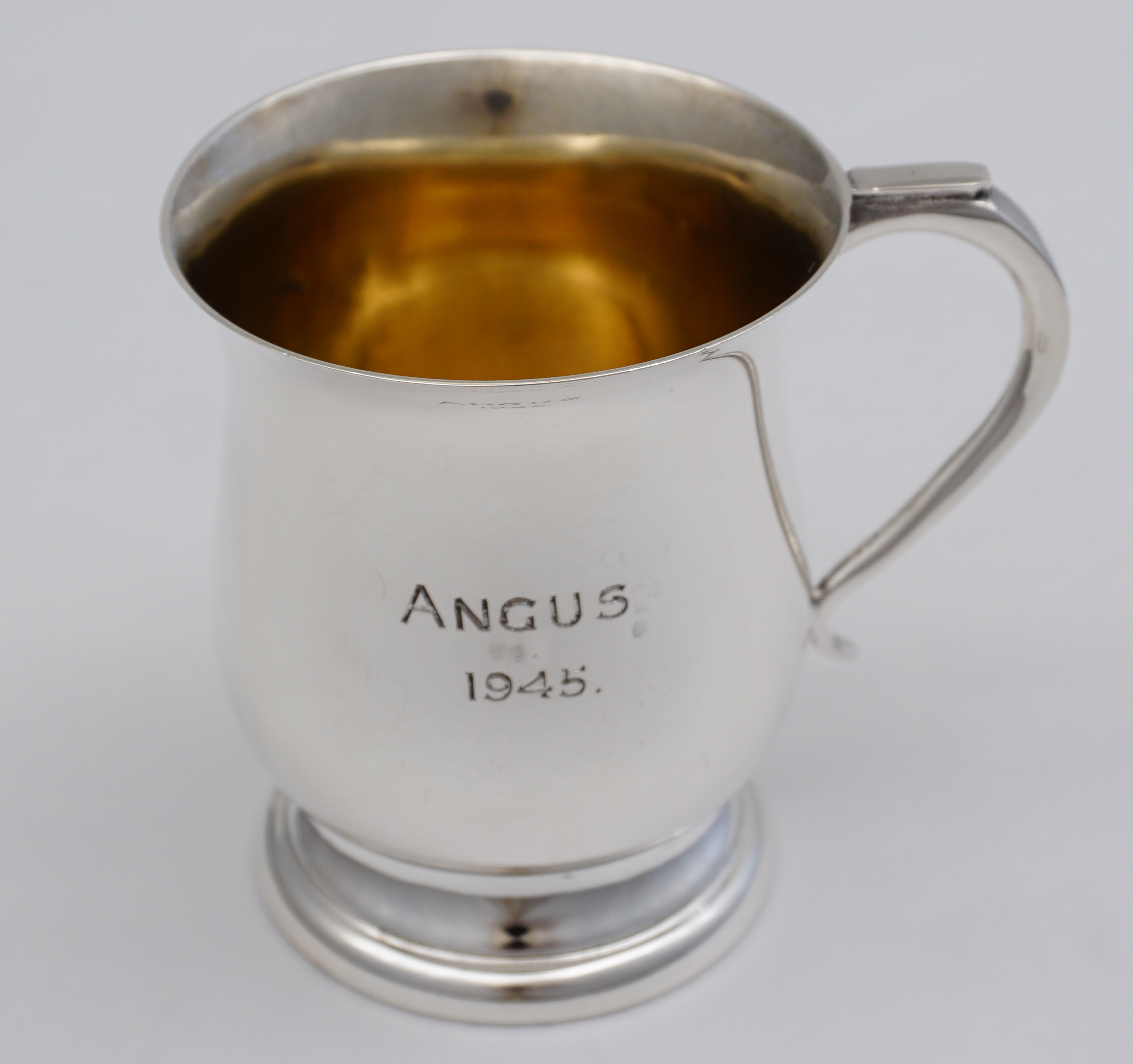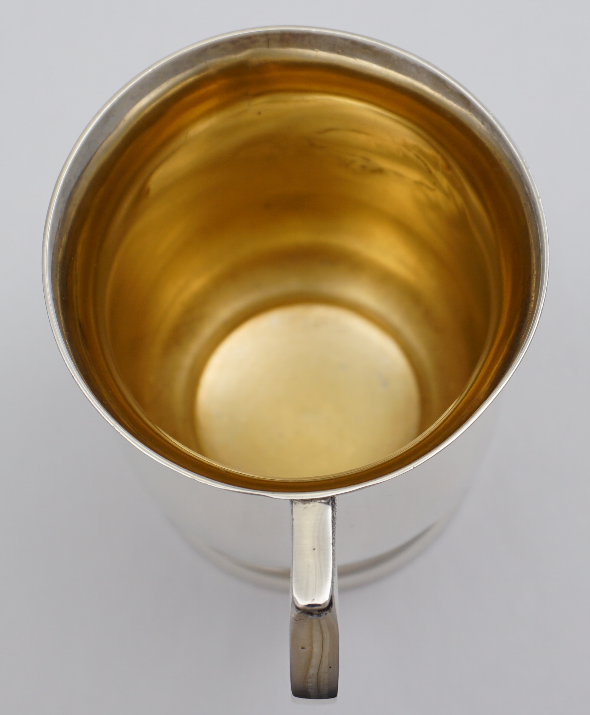 DESCRIPTION | Vintage English solid sterling silver gilt inscribed christening mug. |