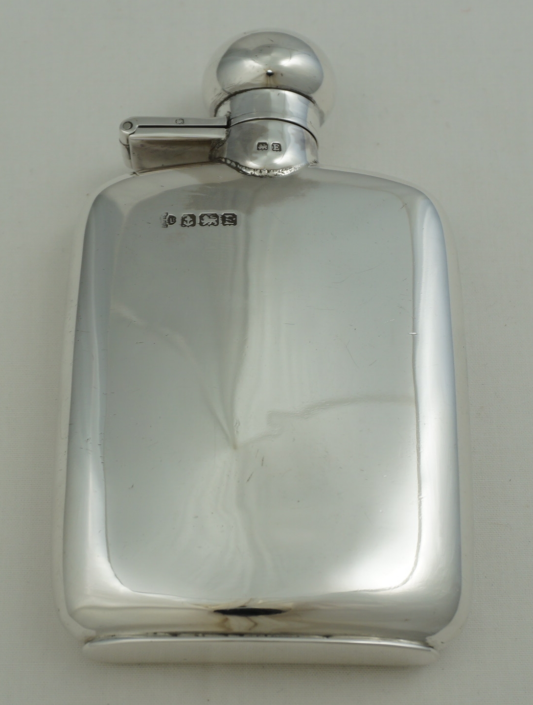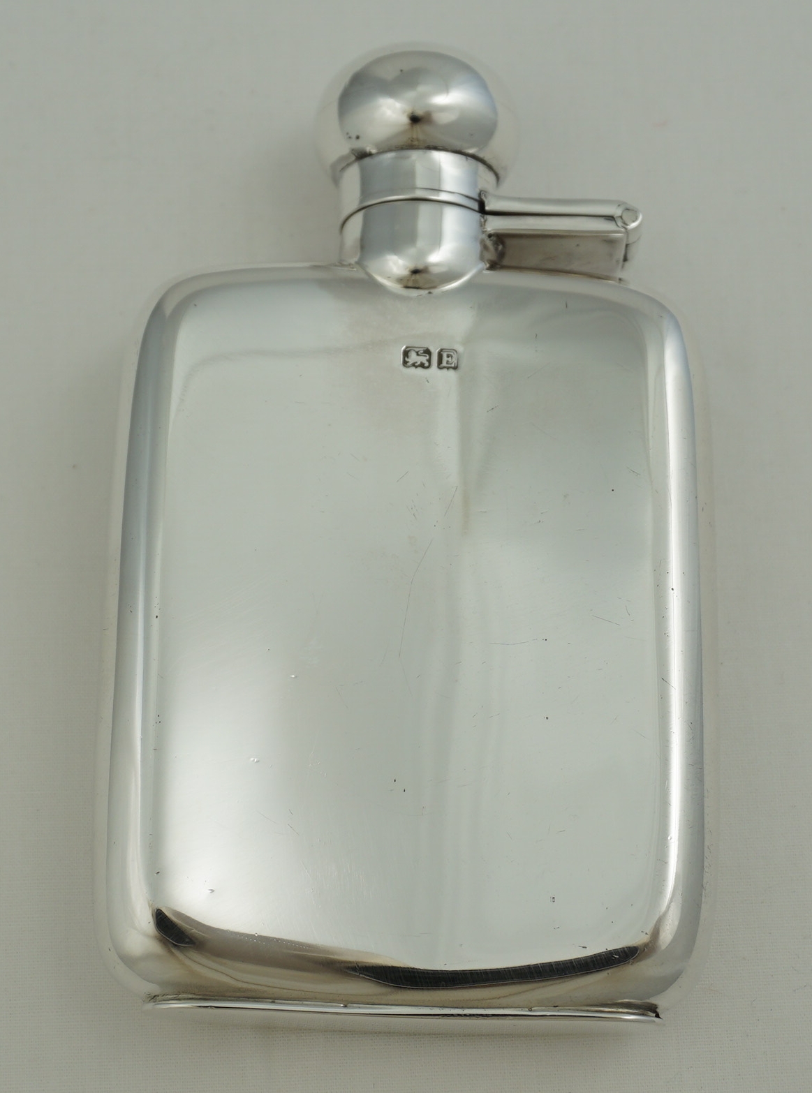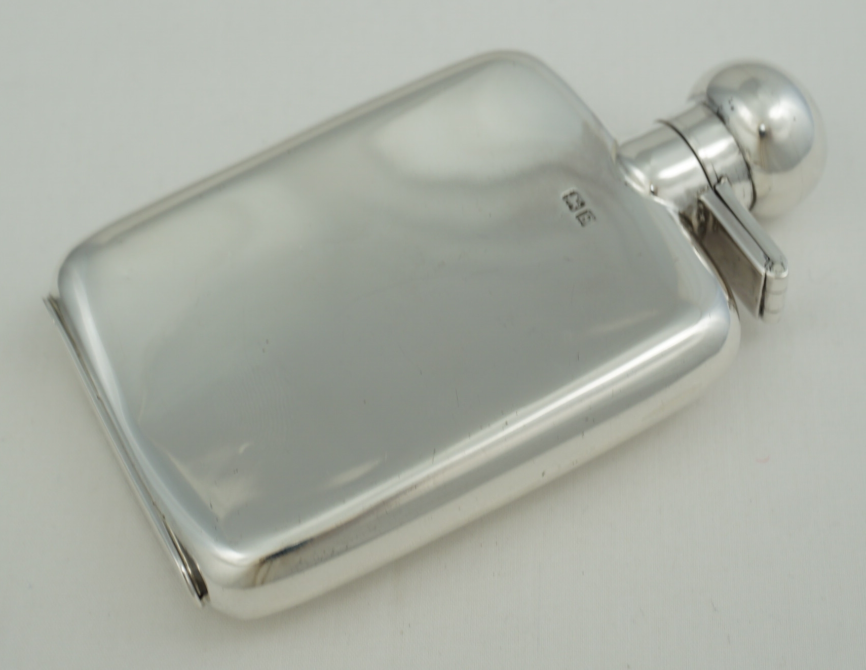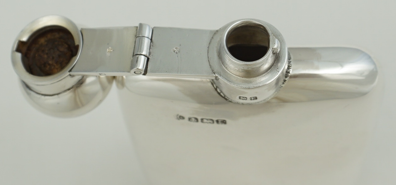 DESCRIPTION | Useful little vintage solid sterling silver pocket flask with original cork seal, no engraving or erasure and correctly hallmarked throughout. Holds 2 ½ fluid ounces, 70ml |