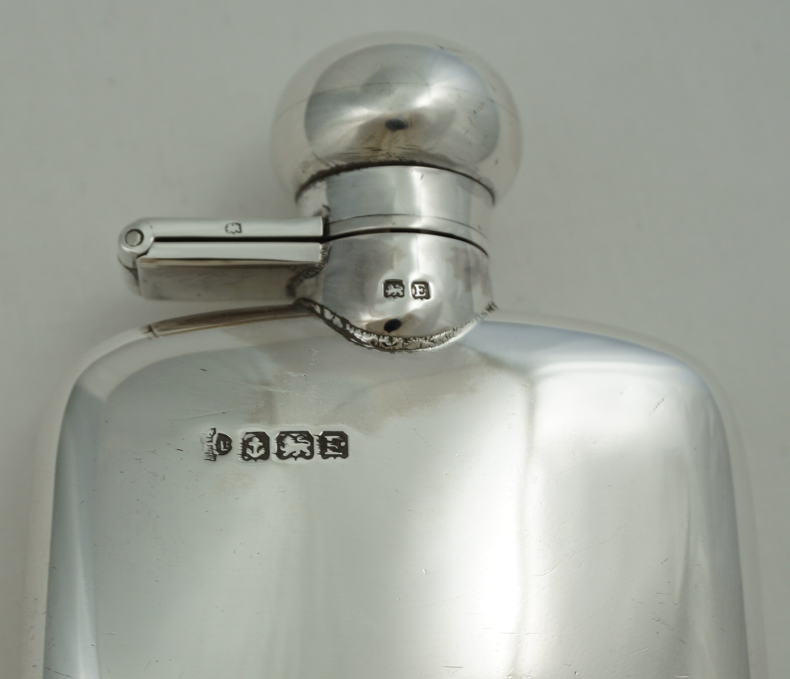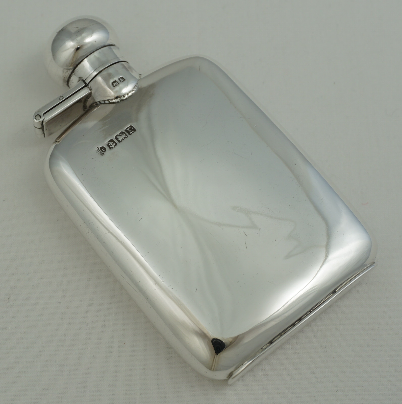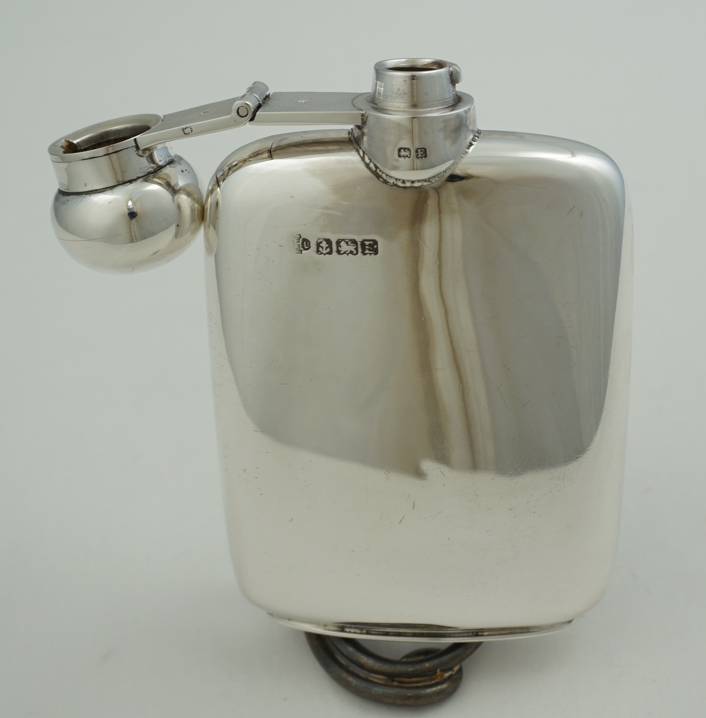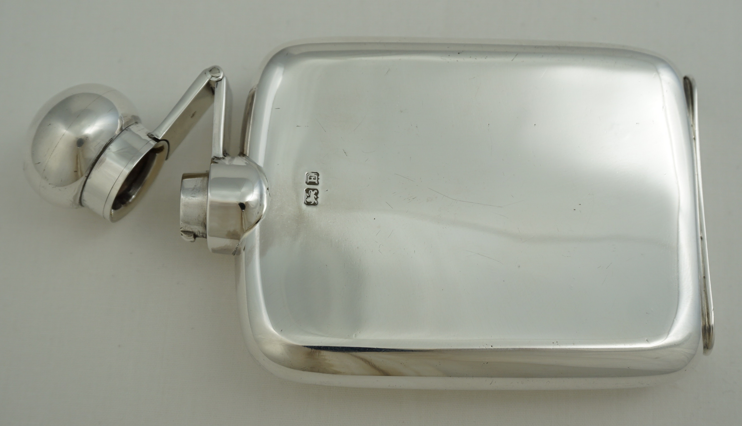 DESCRIPTION | Useful little vintage solid sterling silver pocket flask with original cork seal, no engraving or erasure and correctly hallmarked throughout. Holds 2 ½ fluid ounces, 70ml |