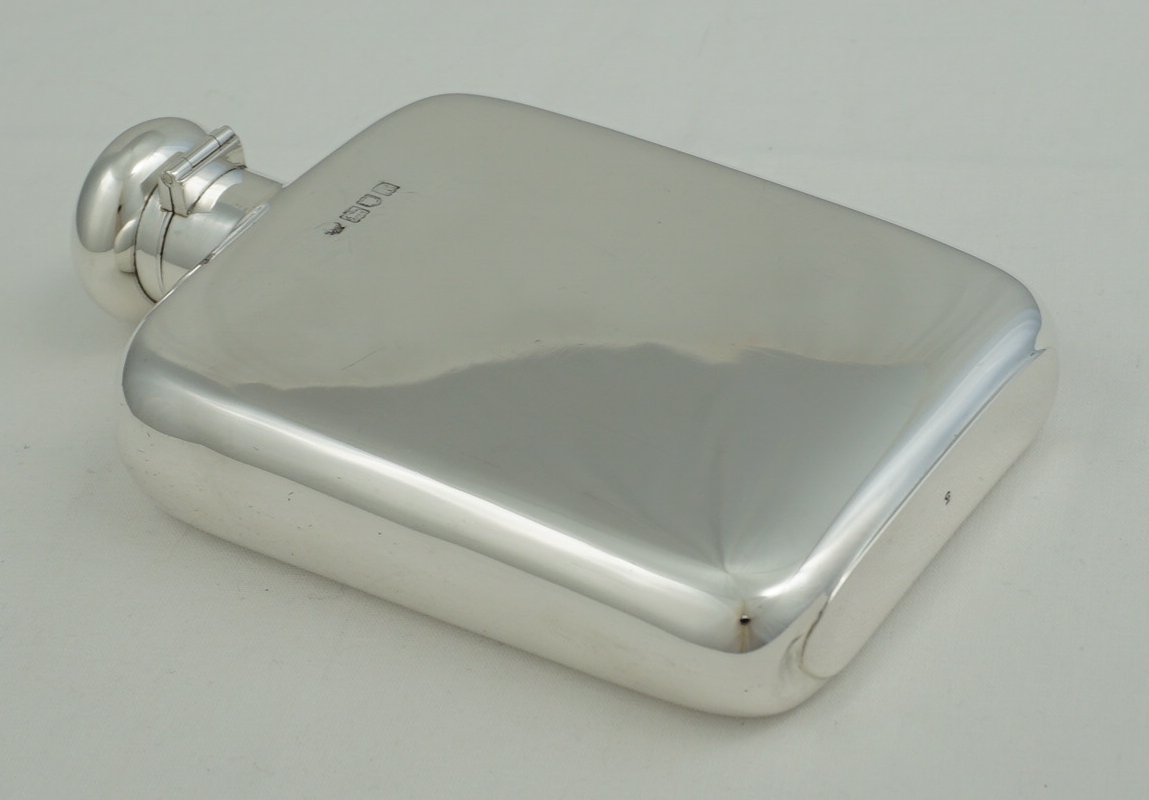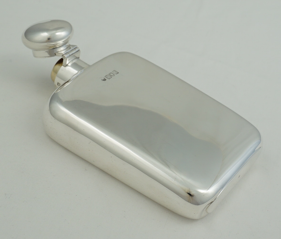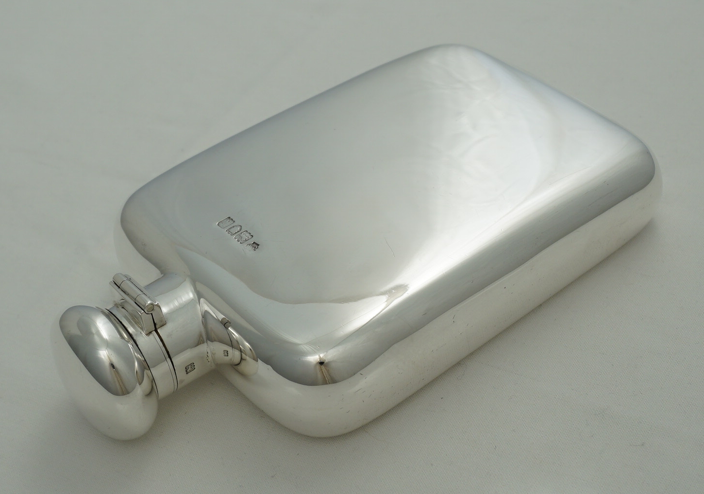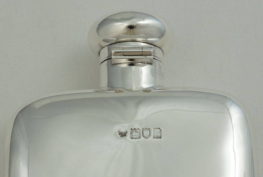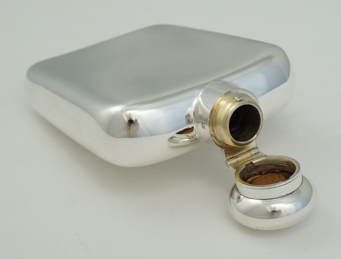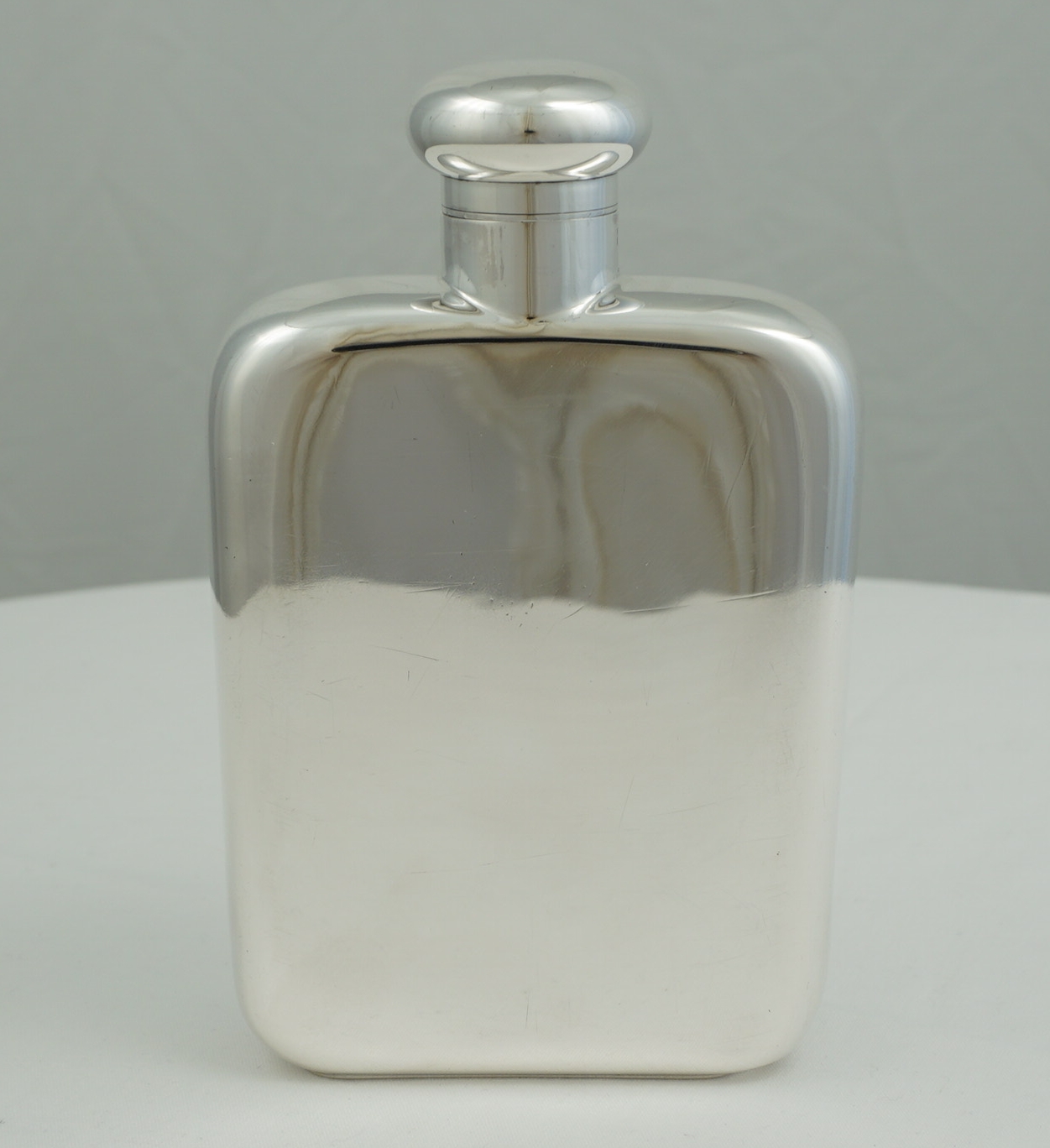 CONDITION | excellent, thick silver, good hinge action, bump to base/corner that could be corrected but in my opinion is fine to leave as is, irrelevant small bump to one side, no engraving or erasure, a large and useful flask |