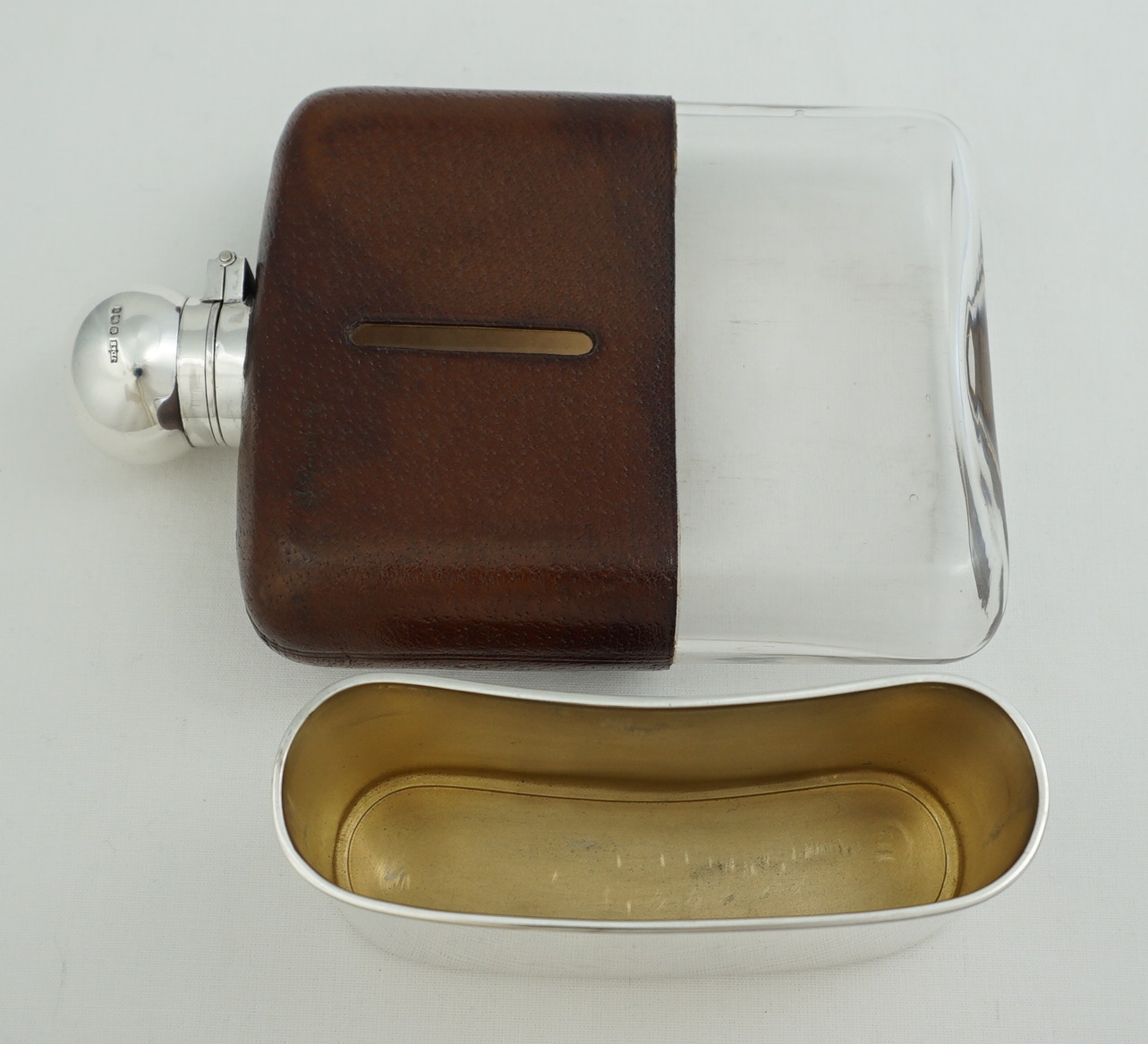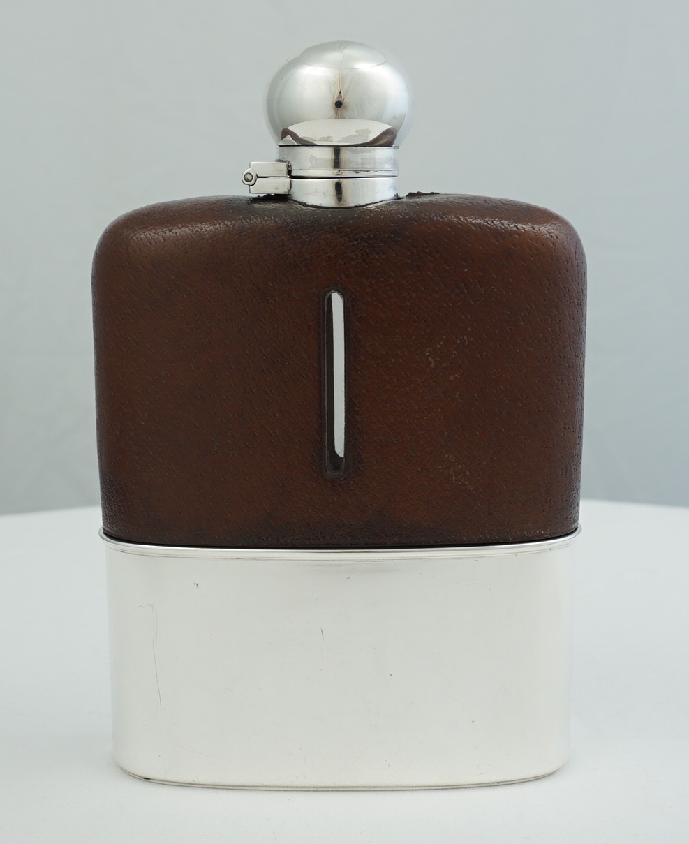 CONDITION | excellent, thick silver, good hinge action, no engraving or erasure, no bumps, a few surface marks commensurate with normal use, no cracks or chips to glass, a large and useful flask if a bit heavy |