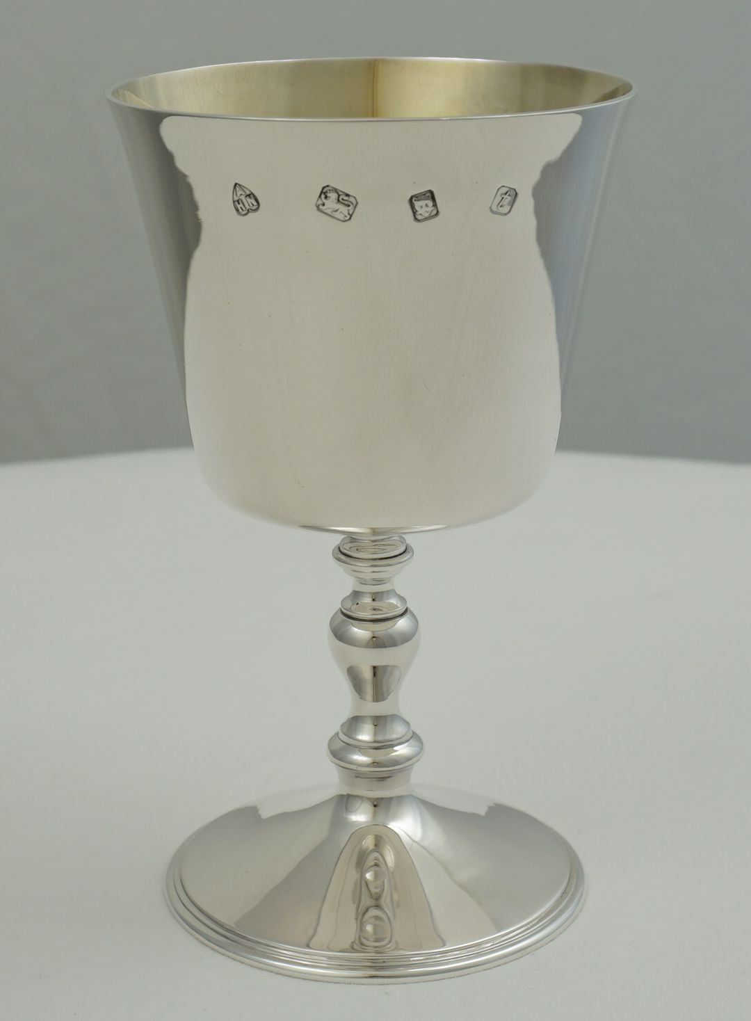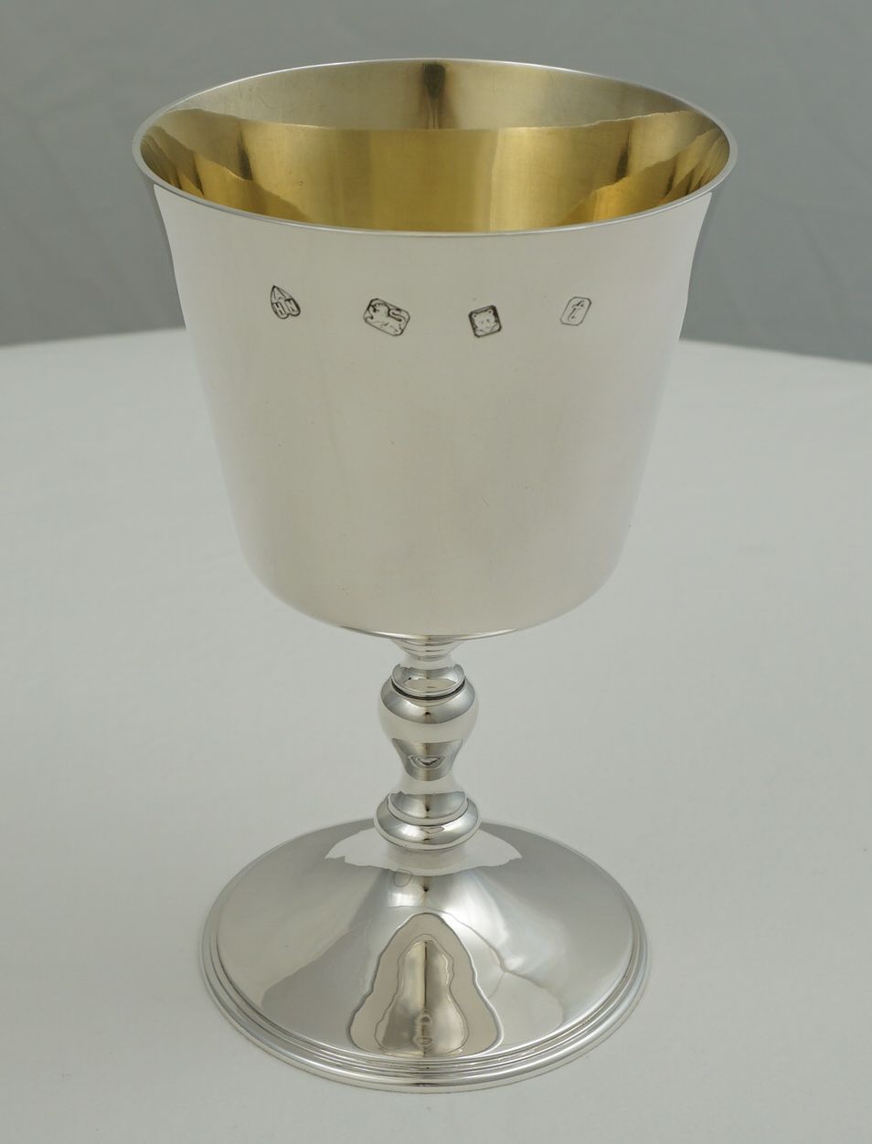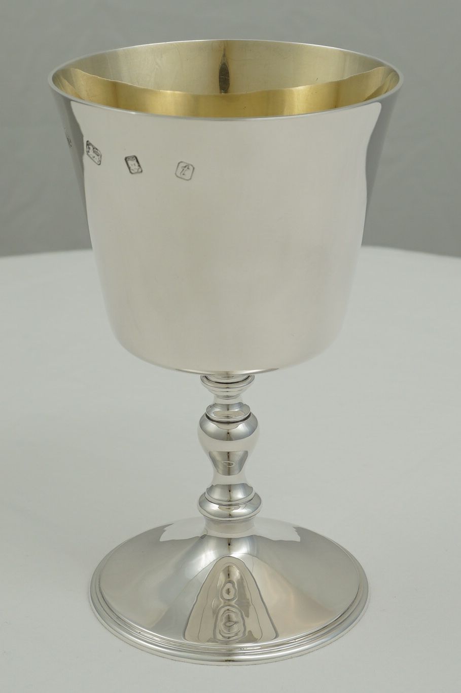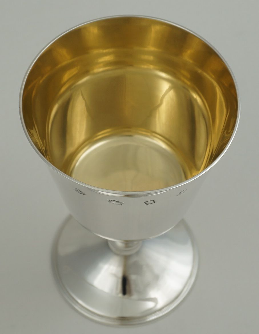 | DESCRIPTION | Superb and large vintage English solid sterling silver goblet with a gilded interior and no engraving or erasure. |