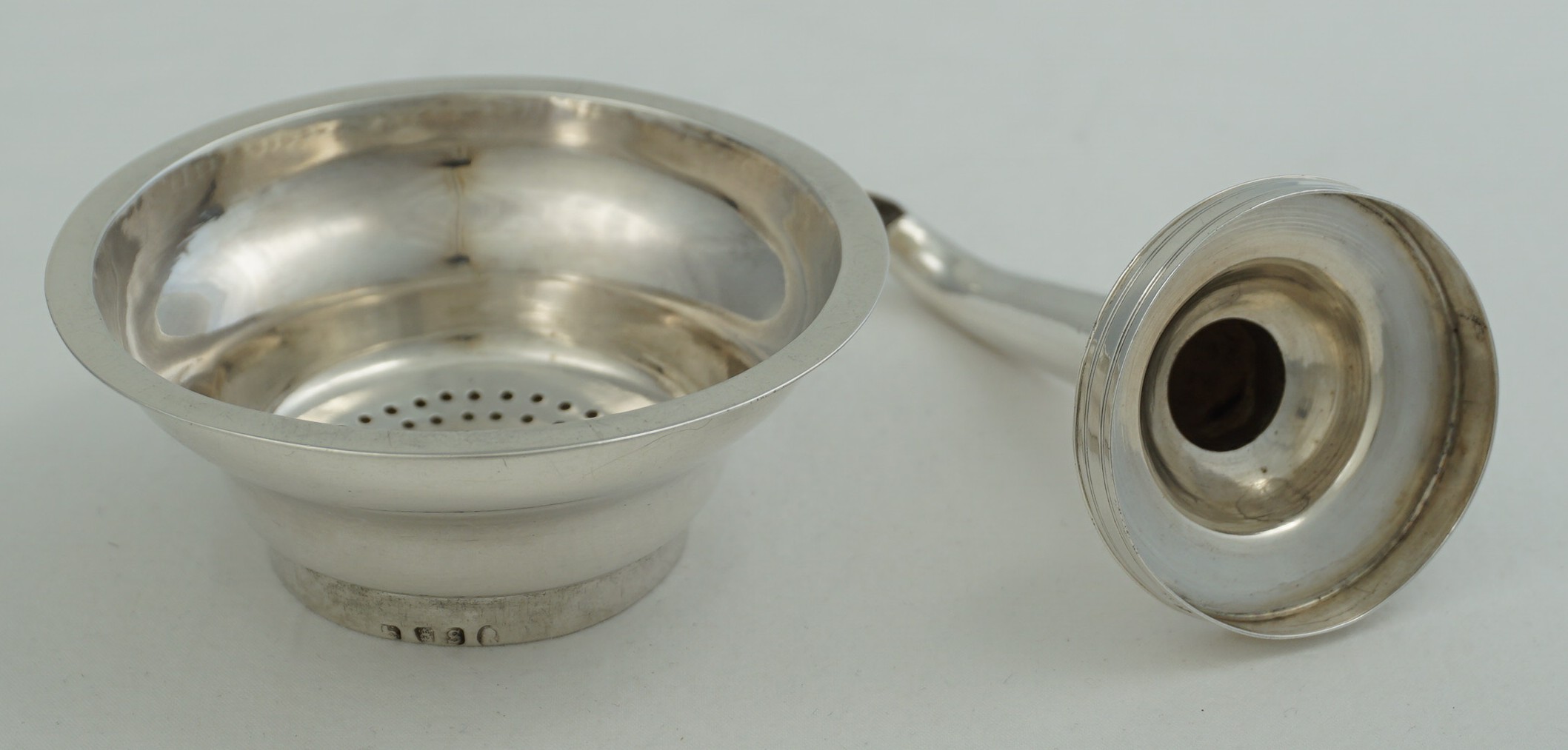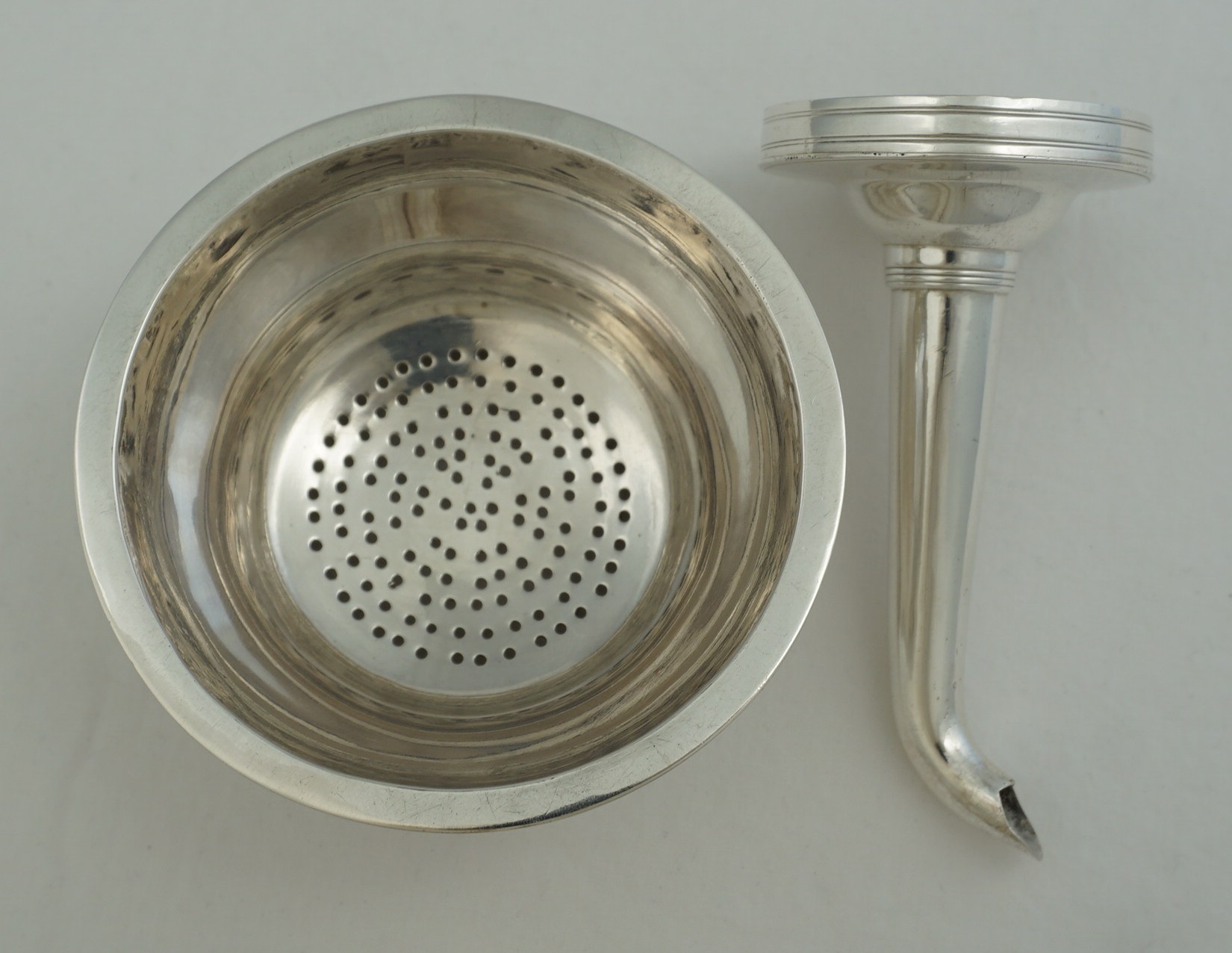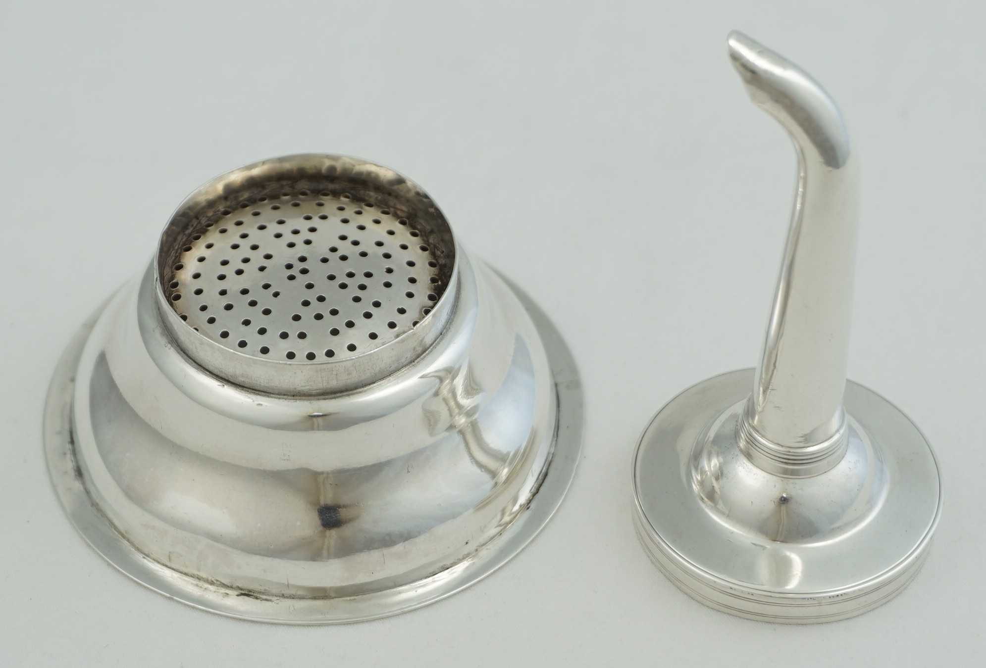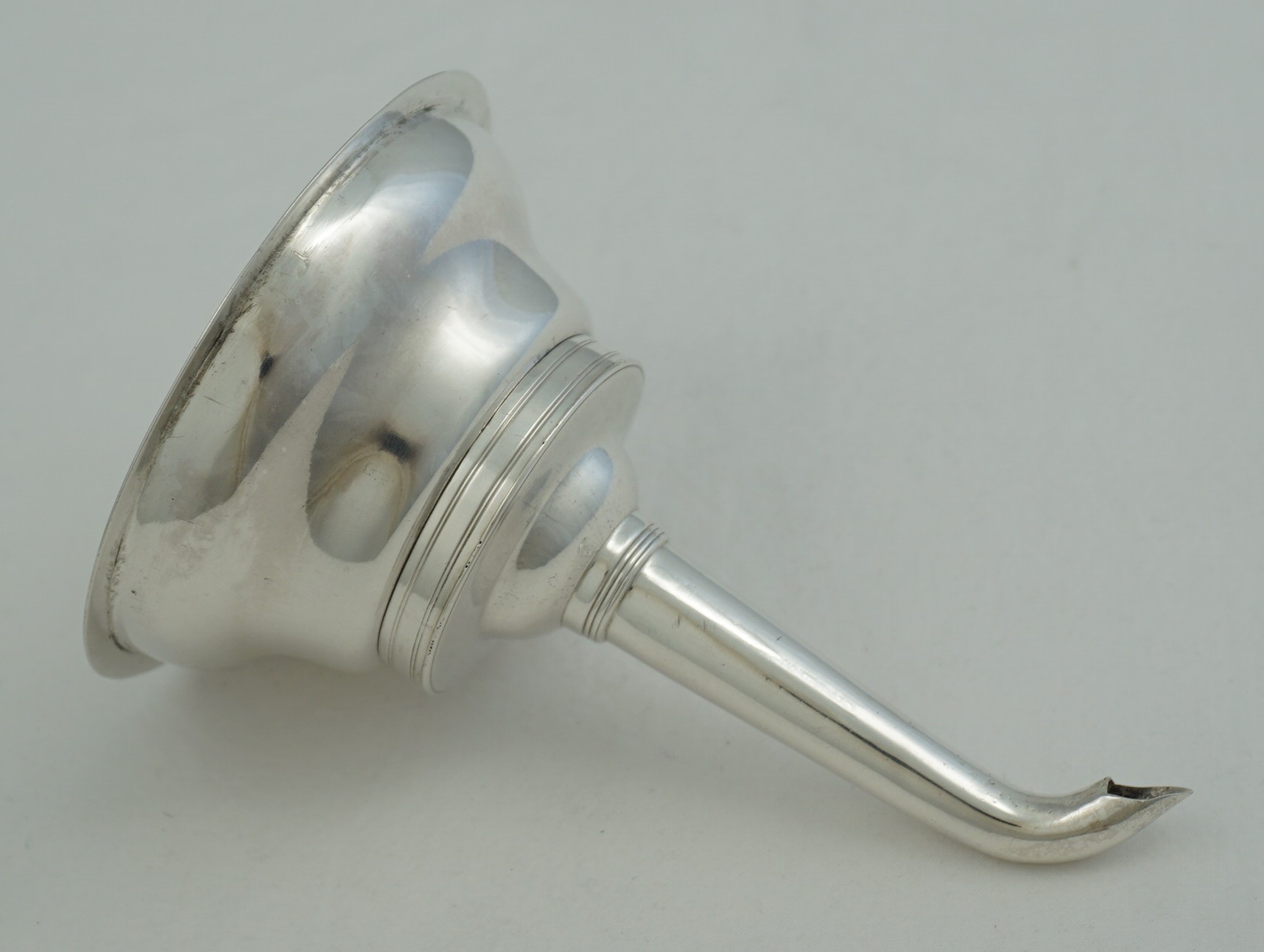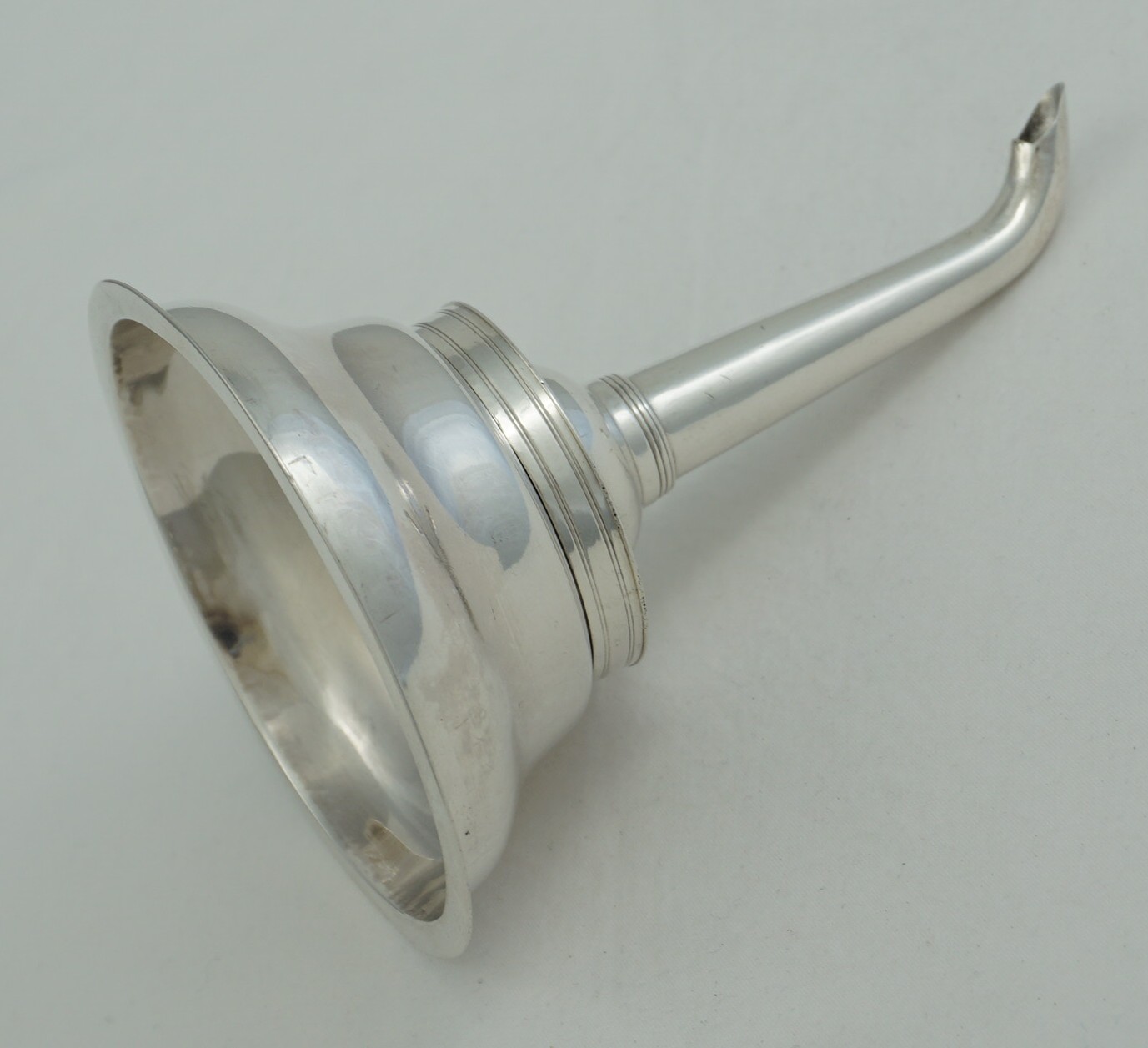 | DESCRIPTION | Antique English Georgian solid sterling silver wine funnel. Both sections are Georgian with thread decoration and are a perfect fit but there are no corresponding maker or date marks to both sections so I cannot be certain that they are not associated. |