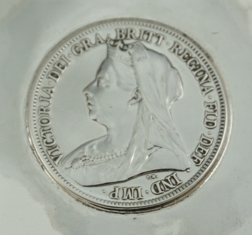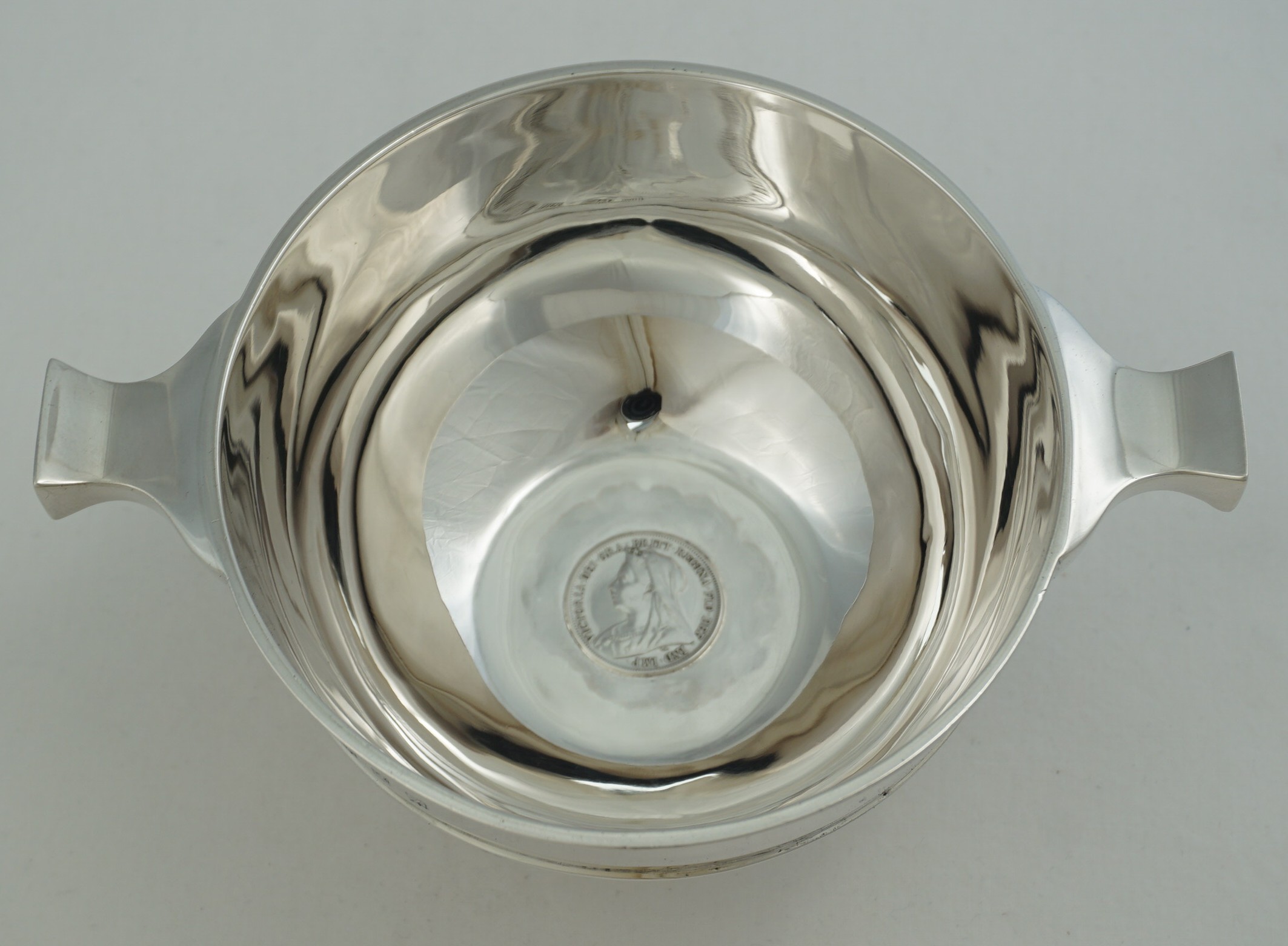 | DESCRIPTION | Large and heavy antique Scottish Victorian solid sterling silver quaich inset with the last Victorian shilling. Although quite a rare coin due to the death of Victoria in 1901 it is not yet especially valuable but it is made of solid sterling silver. |