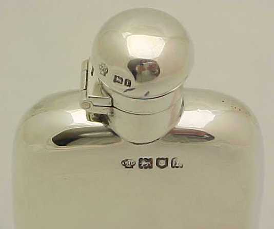 Useful little Edwardian silver pocket flask with original cork seal and correctly hallmarked throughout. |