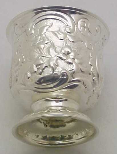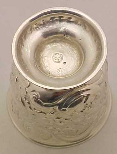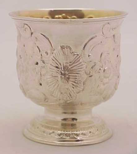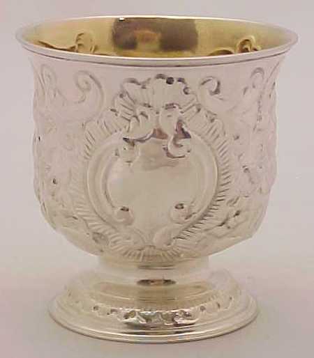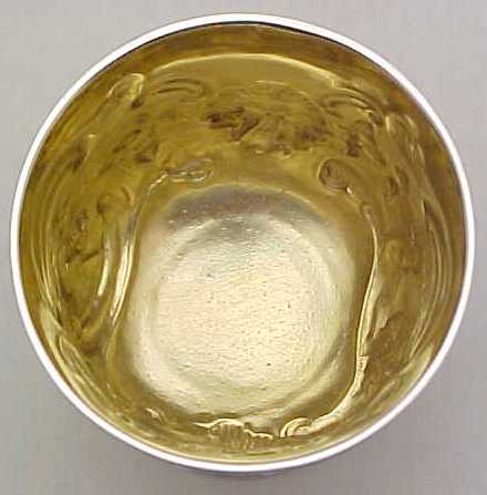 George I silver pedestal footed beaker with internal gilding. I suspect that the blank cartouche has been erased because there a few telltale little dots towards the borders although it has been done sympathetically and the silver is not thin. This actually has a rather hefty feel in the hand. |