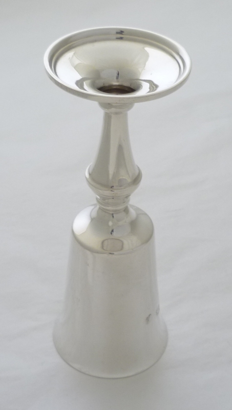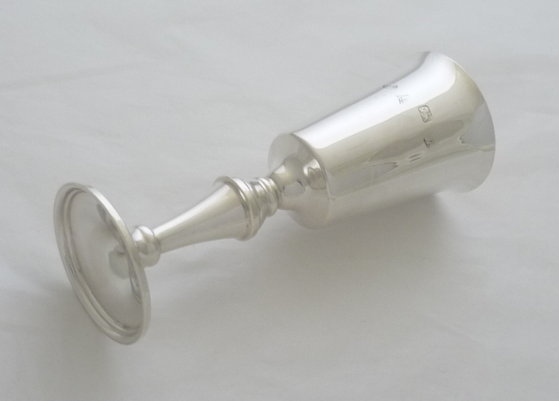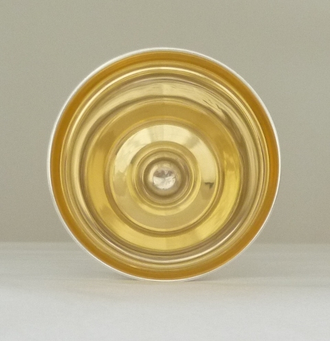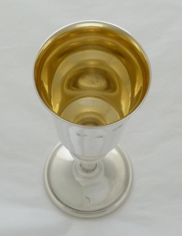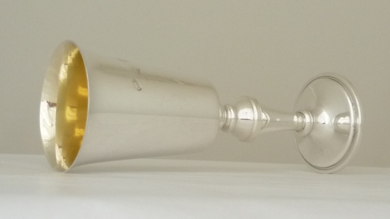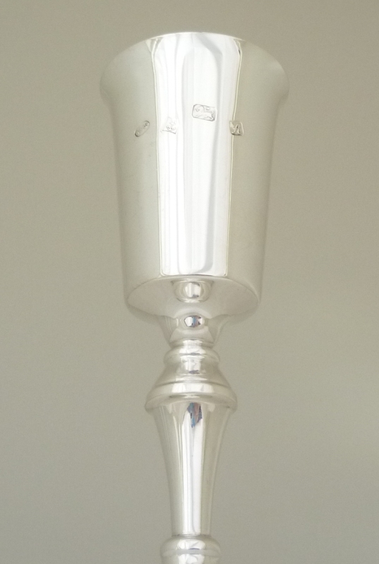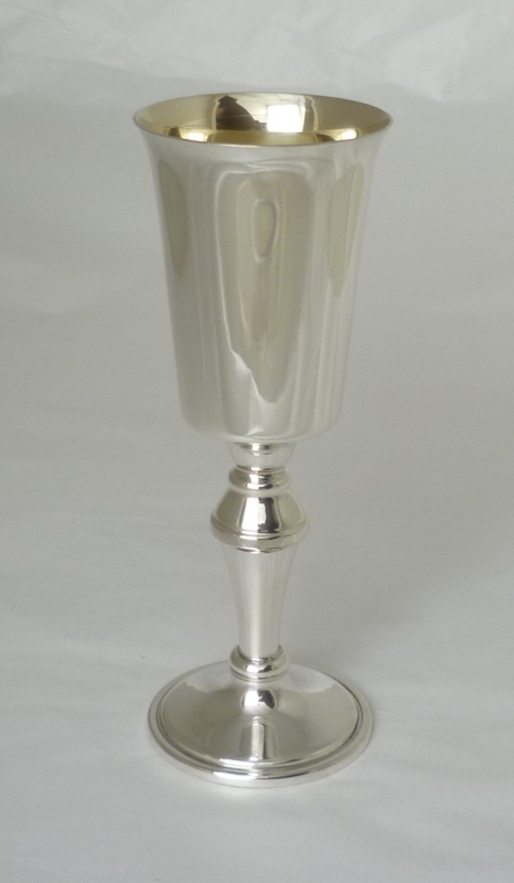 Modern solid silver wine goblet with a baluster stem and gilded interior. |