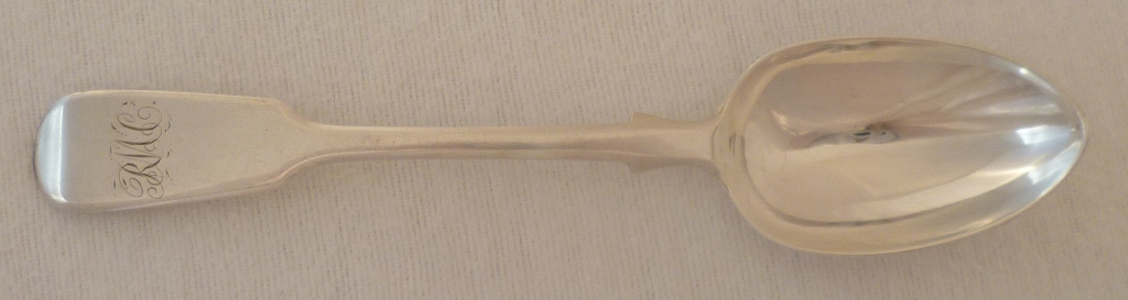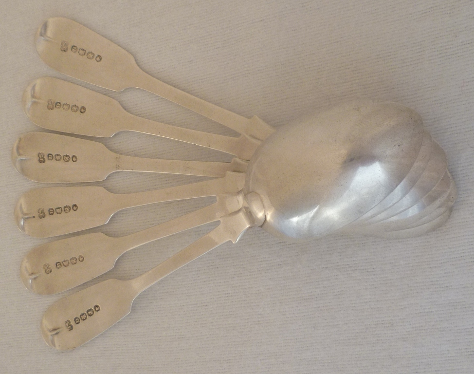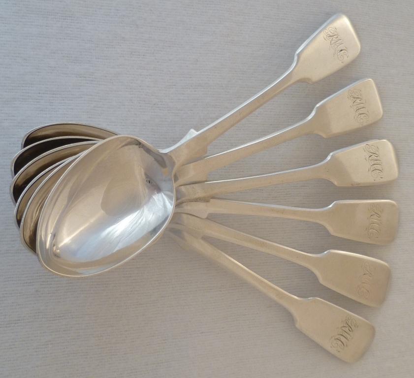DESCRIPTION | Set of six Victorian silver Fiddle pattern teaspoons with monogram engraved terminals. |