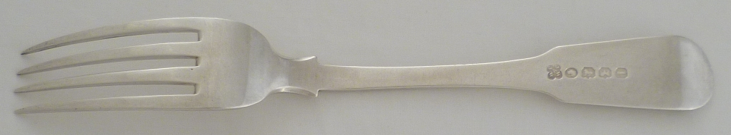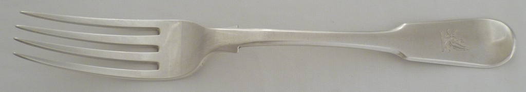 DESCRIPTION | Victorian silver Fiddle pattern table fork with a frontal crest engraving. |