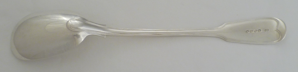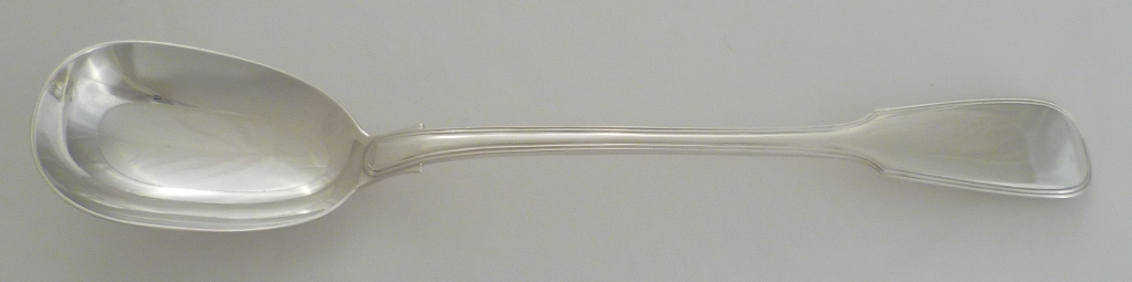 DESCRIPTION | Good Victorian silver double struck Fiddle & Thread pattern salad serving spoon with no engraving or erasure. |