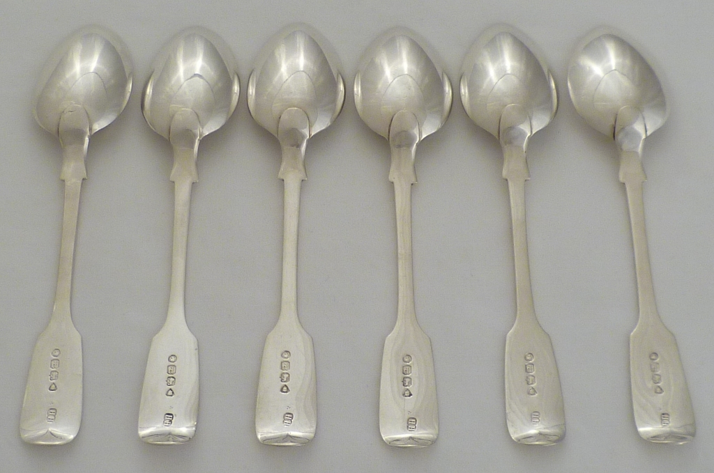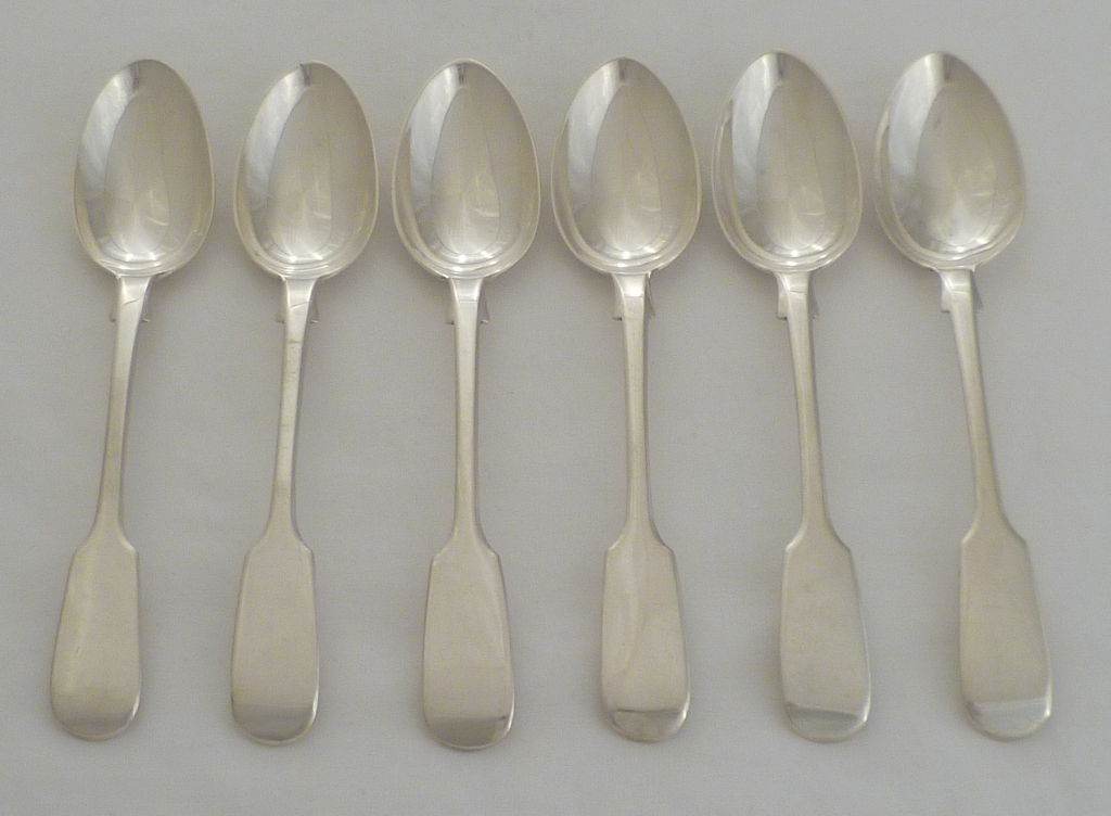 DESCRIPTION | Six Victorian silver Fiddle pattern teaspoons with no engraving. |