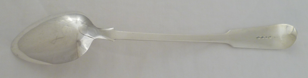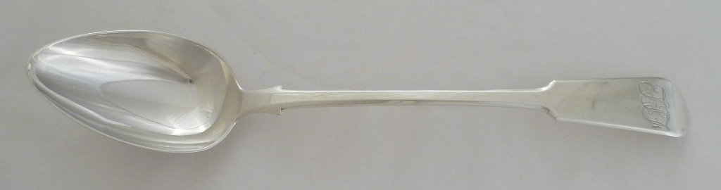 DESCRIPTION | Very good, large Georgian silver Fiddle pattern basting spoon with a monogram engraving. |