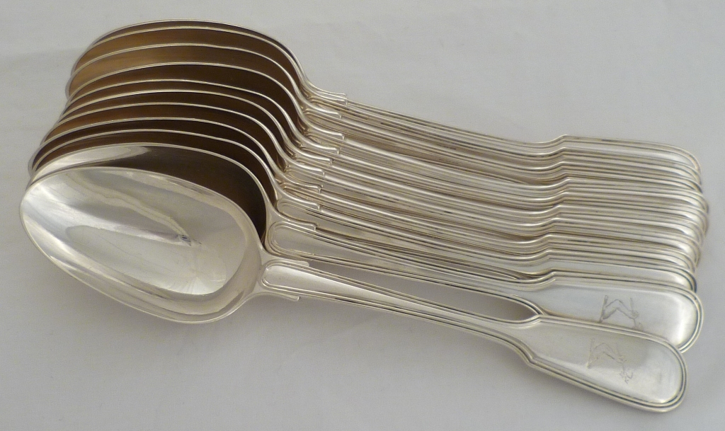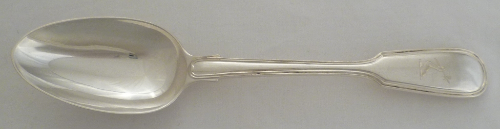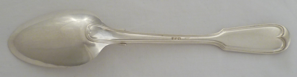 DESCRIPTION | One good quality silver double struck Fiddle & Thread pattern table spoon with a frontal crest engraving. |