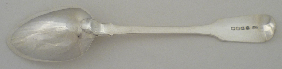 DESCRIPTION | Georgian solid silver Fiddle pattern table or serving spoon with no engraving or erasure. |