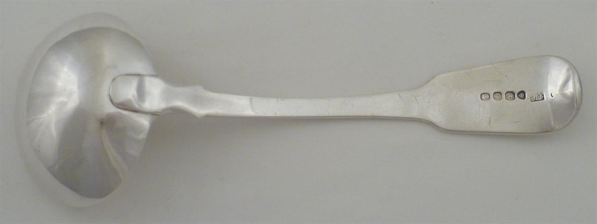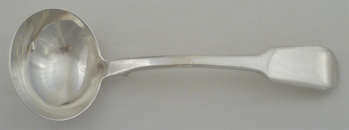DESCRIPTION | Georgian solid silver Fiddle pattern sauce ladle with no engraving. |