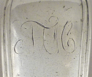 CONDITION | metal nice and thick, good hallmarks, monogram engraving and bowl drop rubbed, several small bowl bumps and surface marks |