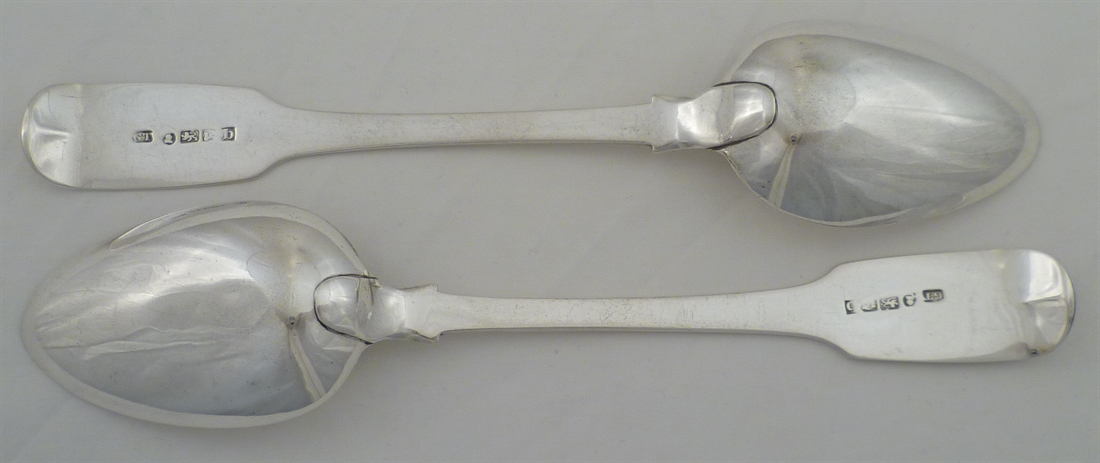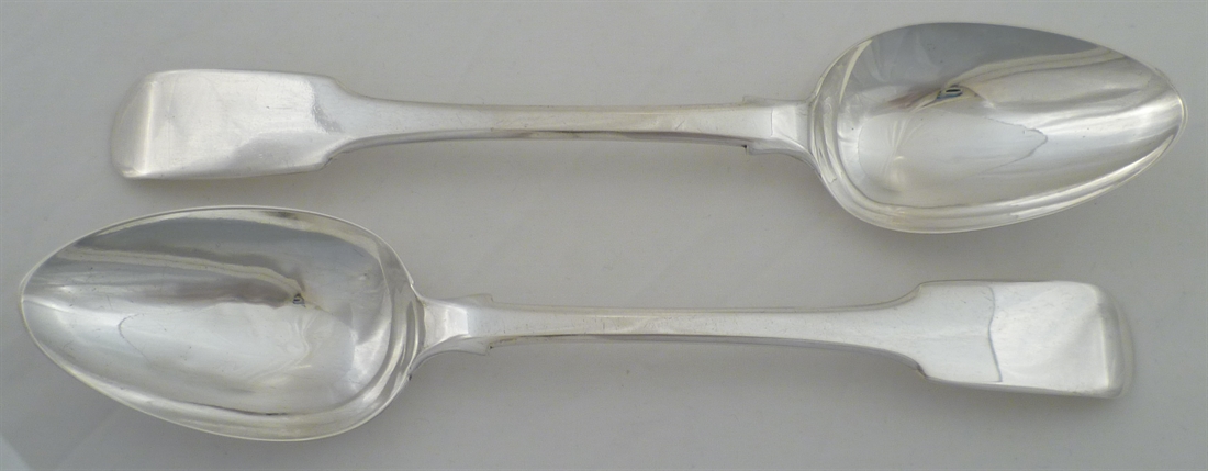 DESCRIPTION | Pair of Georgian solid silver Fiddle pattern table spoons with no engraving. |