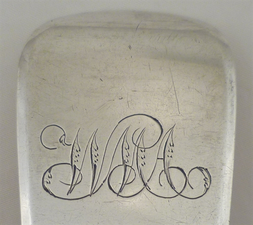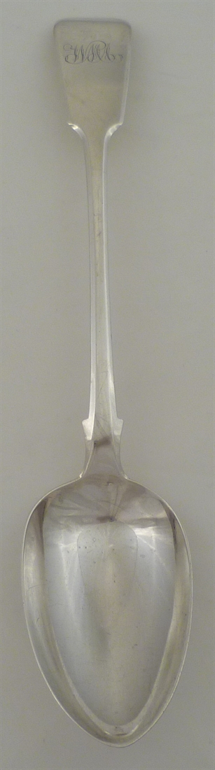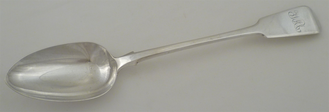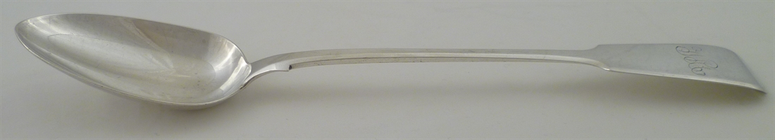 DESCRIPTION | Good Georgian solid silver Fiddle pattern basting or gravy spoon with a frontal monogram engraving. |
