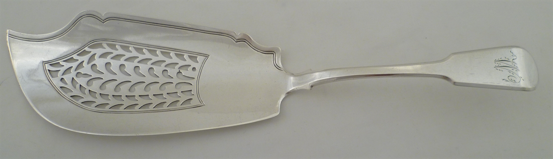 DESCRIPTION | Good Georgian solid silver Fiddle pattern fish server with a frontal initial engraving. |