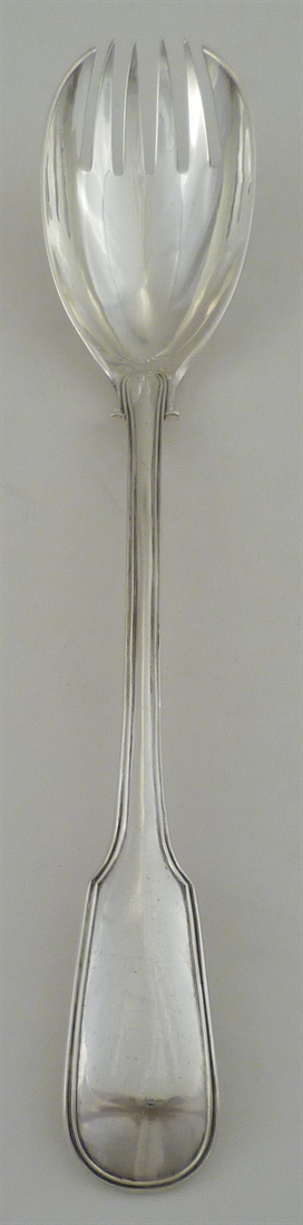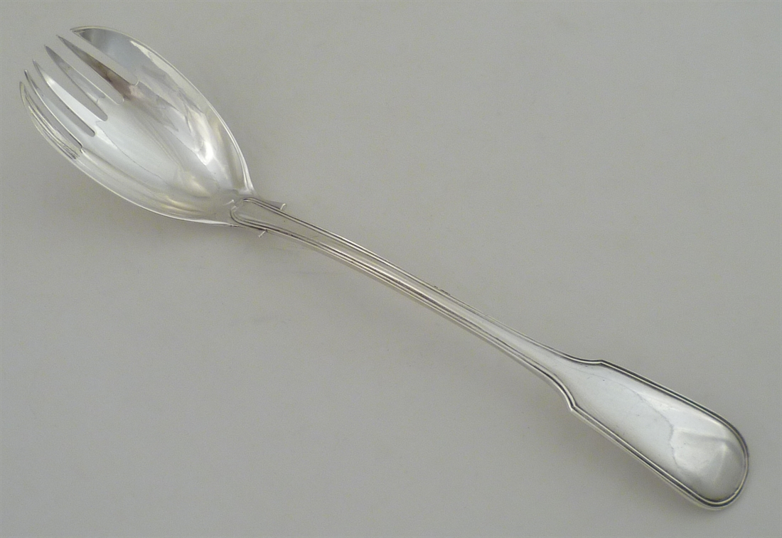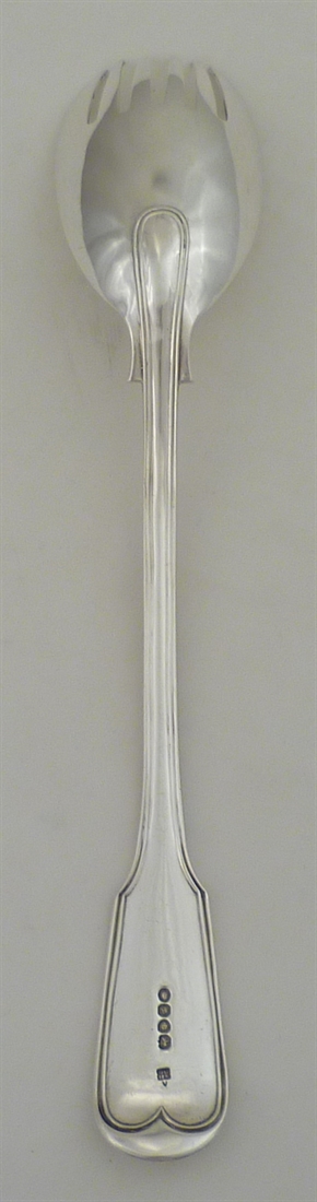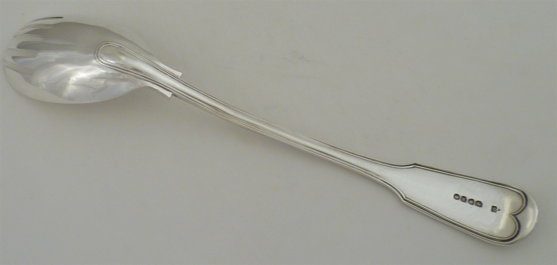 DESCRIPTION | Very good William IV solid silver Fiddle pattern salad serving spork with no engraving or erasure. |