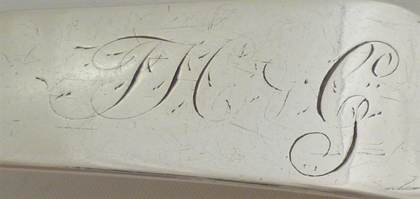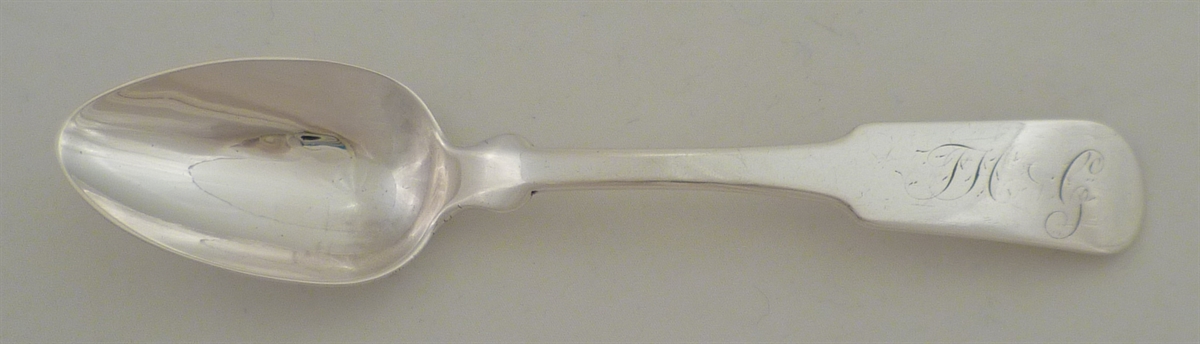 DESCRIPTION | Single US coin silver Fiddle pattern spoon with a frontal engraving. |