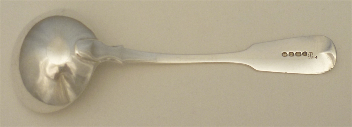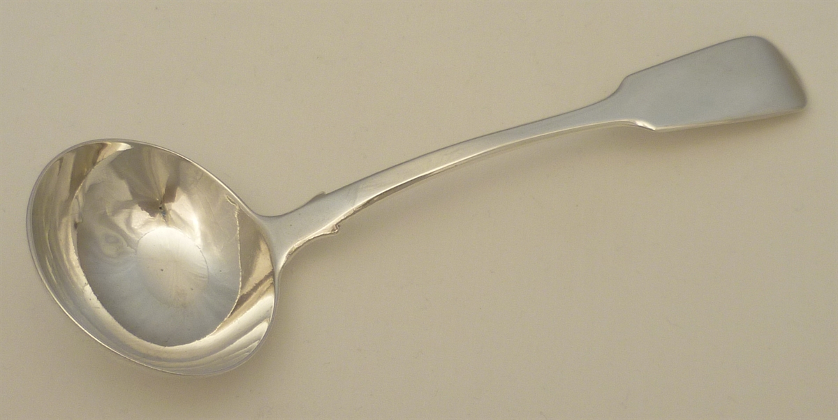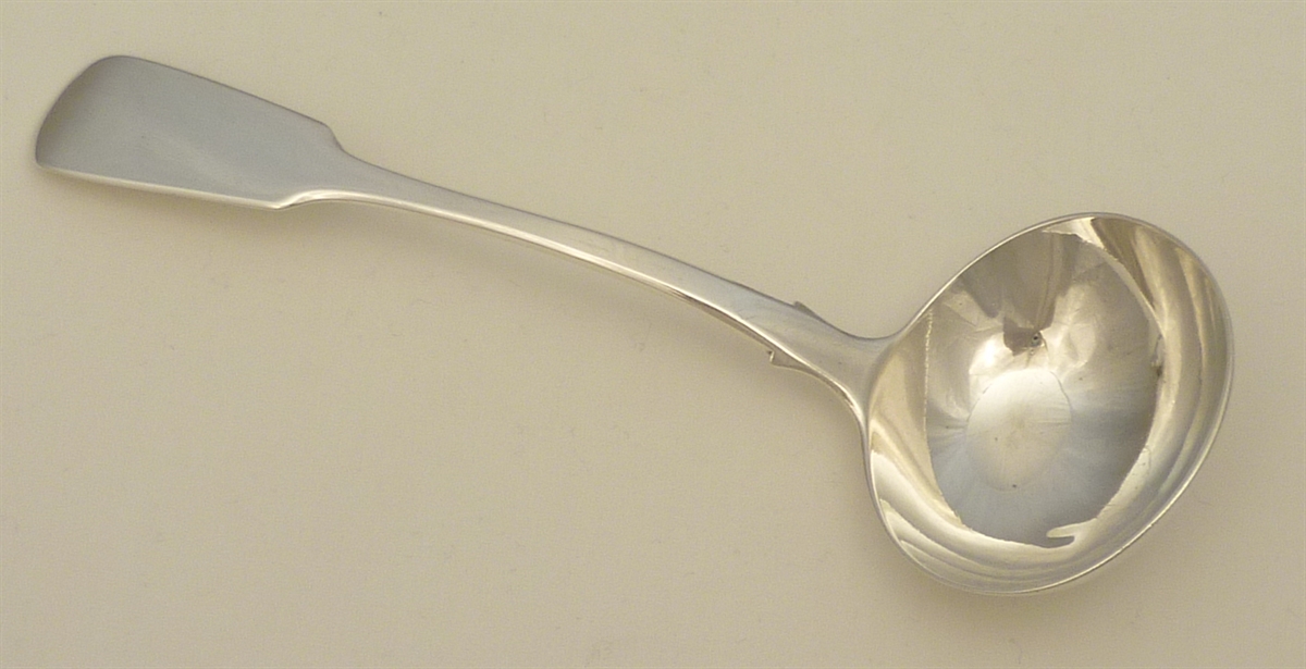 DESCRIPTION | Good English Georgian solid sterling silver Fiddle pattern sauce ladle with no engraving or erasure. |