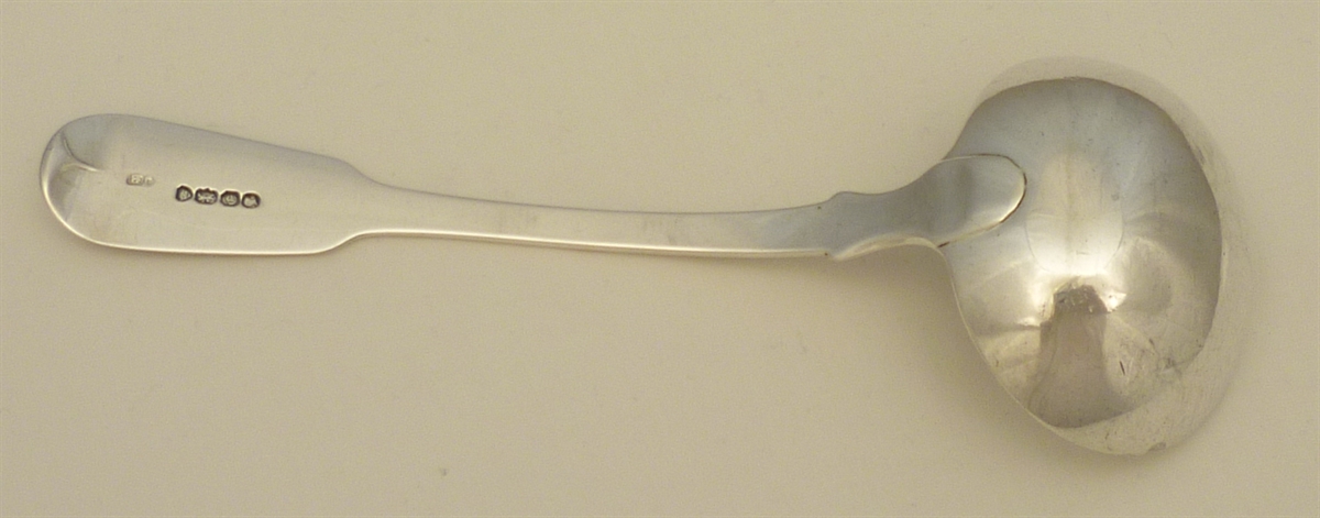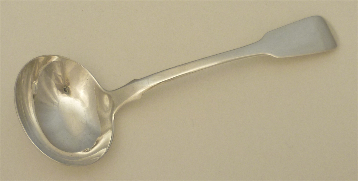 DESCRIPTION | English Victorian solid sterling silver Fiddle pattern sauce ladle with no engraving. |
