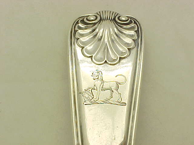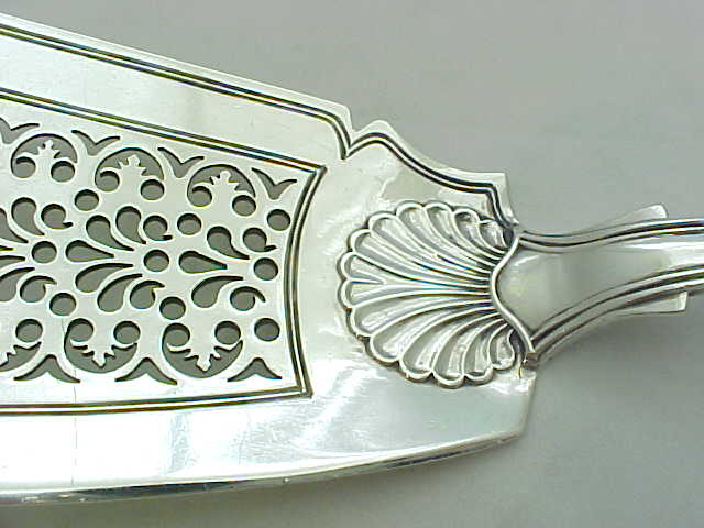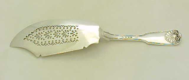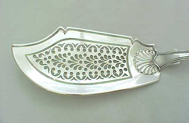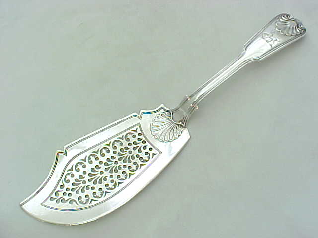 Superb early Victorian silver double struck Fiddle, Thread & Shell pattern fish server with a distinctive engraved crest and hand cut pierced decoration. |