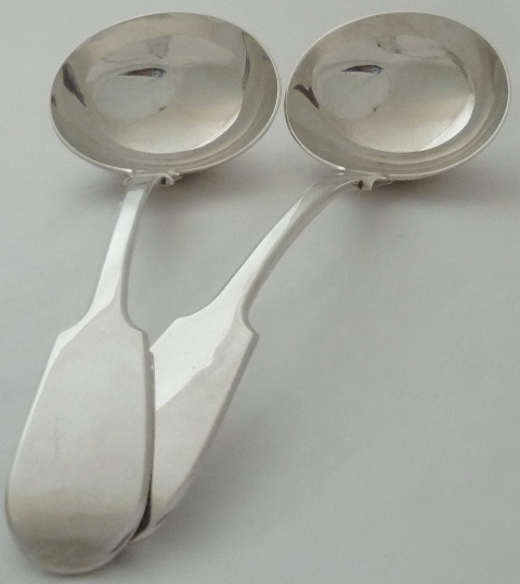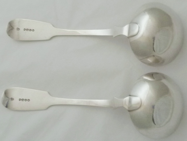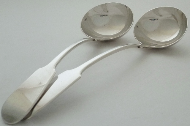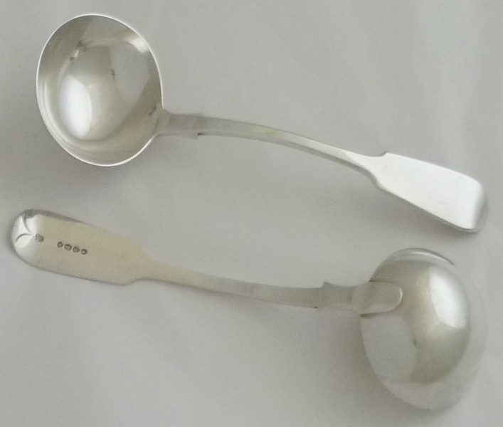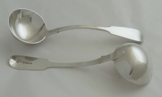 Good pair of Victorian silver Fiddle pattern sauce ladles. |