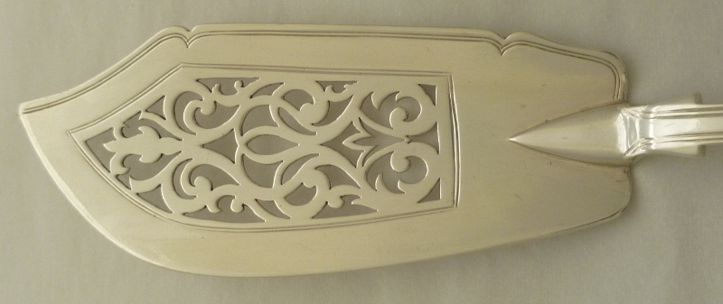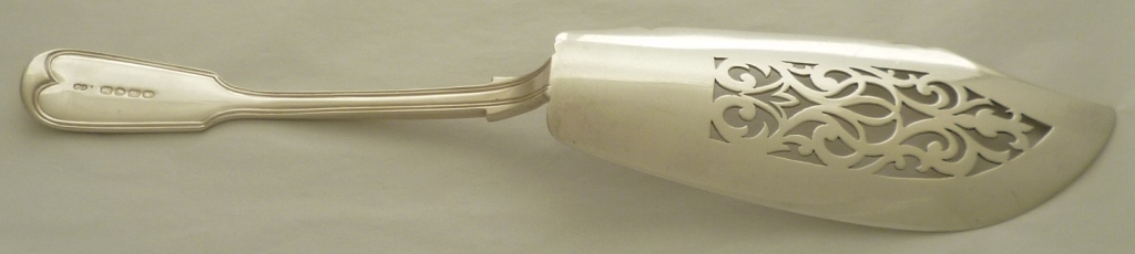 Victorian silver double struck Fiddle and Thread pattern fish server, crest engraved terminal. |