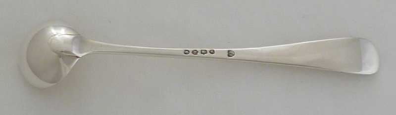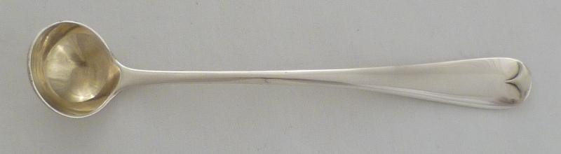 DESCRIPTION | Victorian silver Hanoverian pattern condiment ladle with a gilded bowl and no engraving or erasure. |