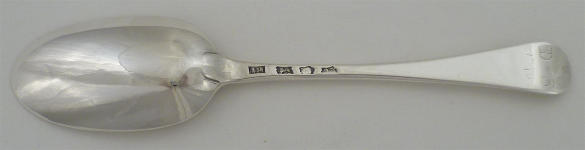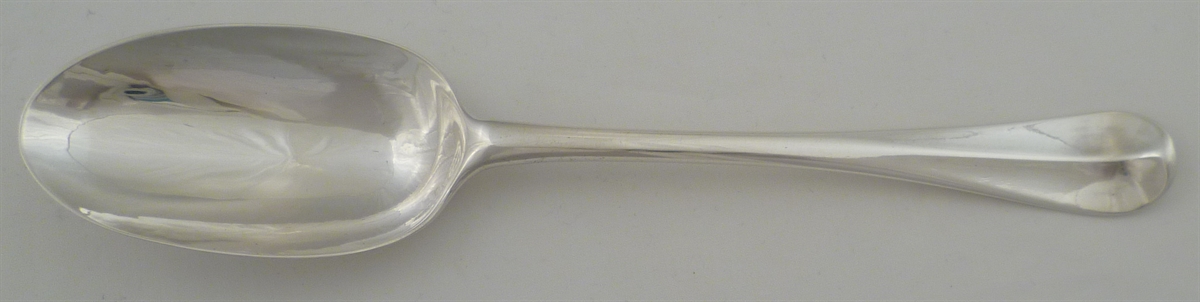 DESCRIPTION | Georgian solid silver Hanoverian with frontal rib pattern table spoon engraved verso with the original initials and date 1740 and exceptionally clear hallmarks for spoons of this period. |