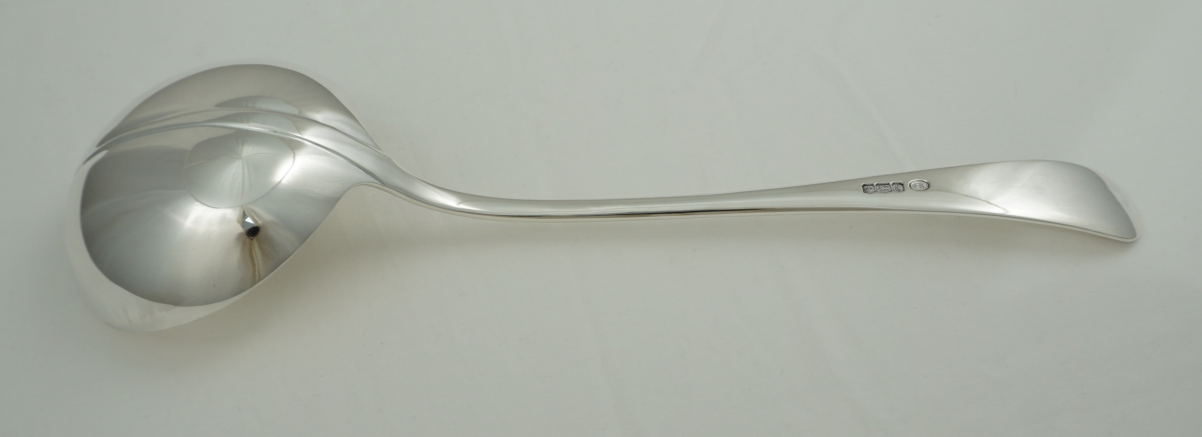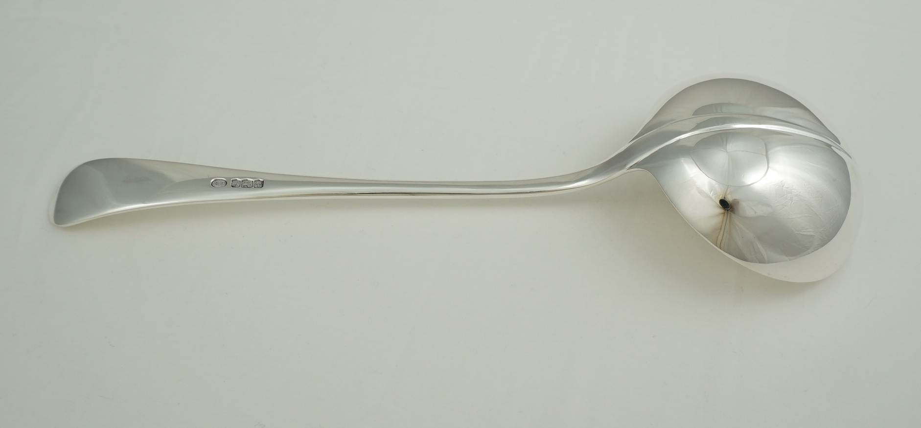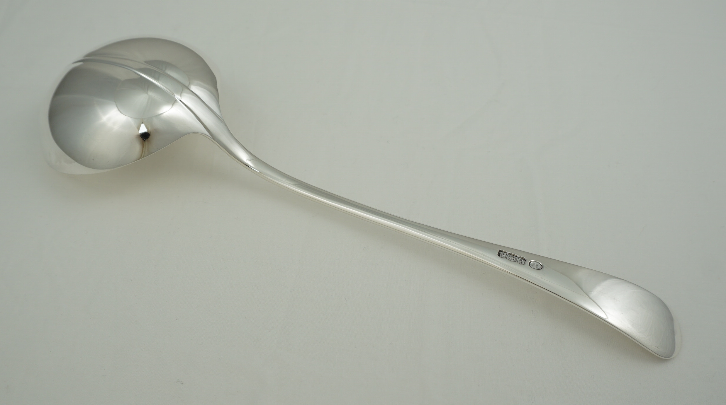 DESCRIPTION | Excellent antique English solid sterling silver Hanoverian with Rat Tail pattern soup ladle with no engraving or erasure. |