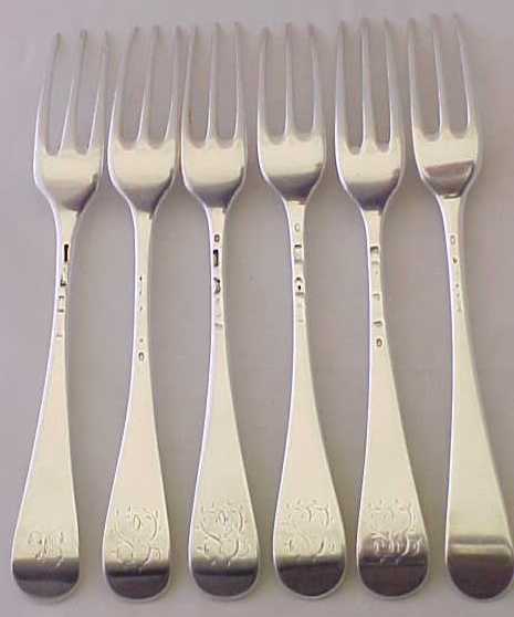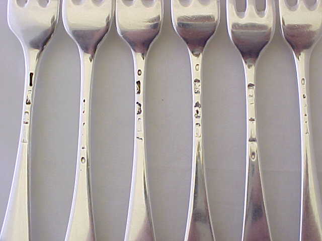 The Coker fork is dated 1755 as are one/two more, the rest are of similar date but the marks are rubbed/pinched |