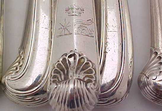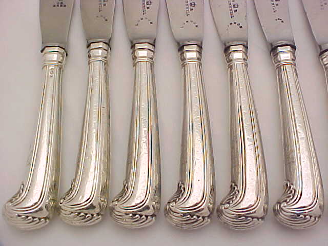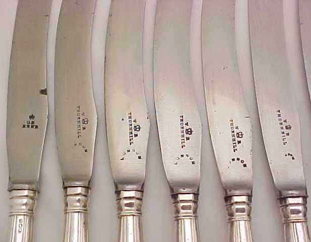 There is some pitting and it is highlighted in black in the images of the blades but none is deep and most would fade with use. The leaf capped Georgian silver hafts are exceptionally good with only slight surface marks commensurate with very light use over their one hundred and ninety years. |