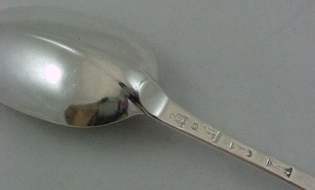 Table spoon with a long rat-tail to the bowl and clear hallmarks. Original prick engraved initials verso. |