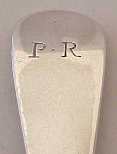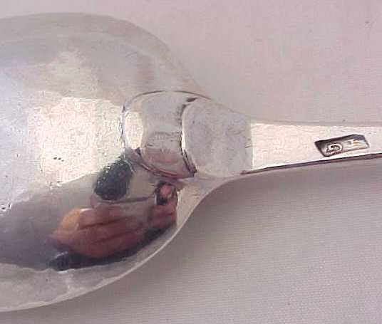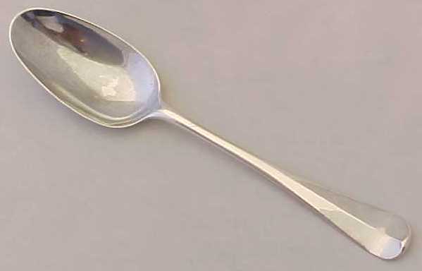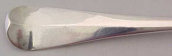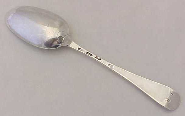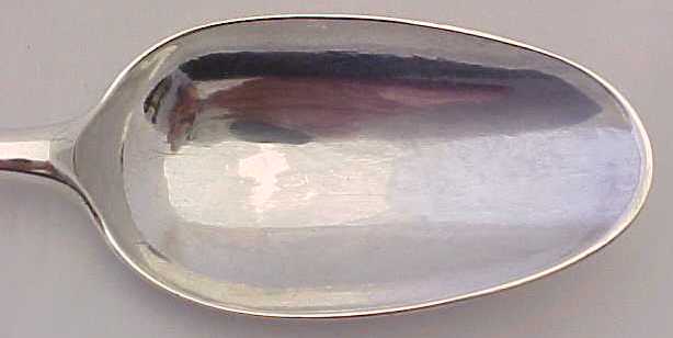 Early Georgian silver Hanoverian pattern table spoon with original initial engraving. This spoon still retains most of the original 'skin', seen as the darker areas in the images. It has worn off only around the bowl tip, edges and where you would hold the handle, exactly what you would expect from a very lightly used spoon. |