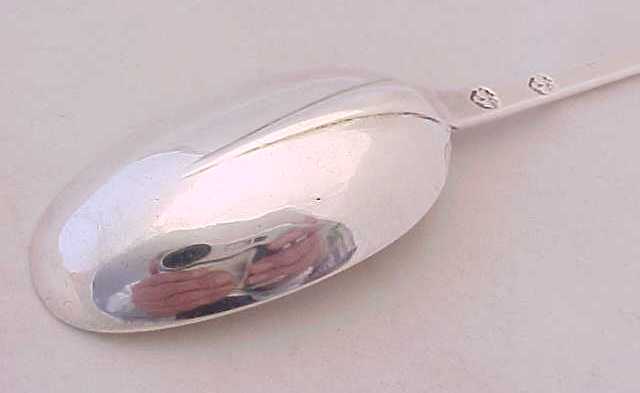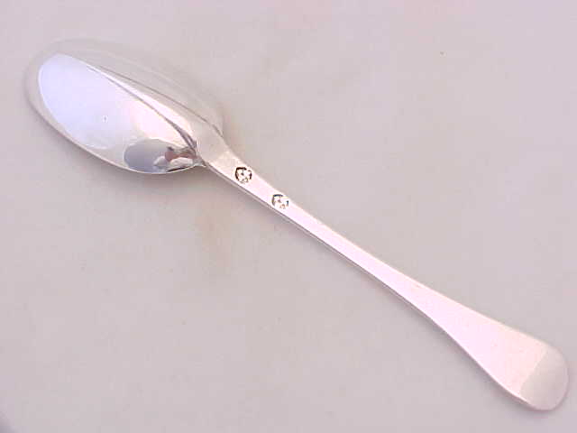 William III silver Hanoverian pattern table spoon with a long rat tail. |