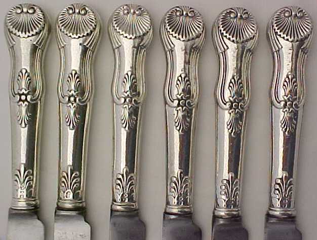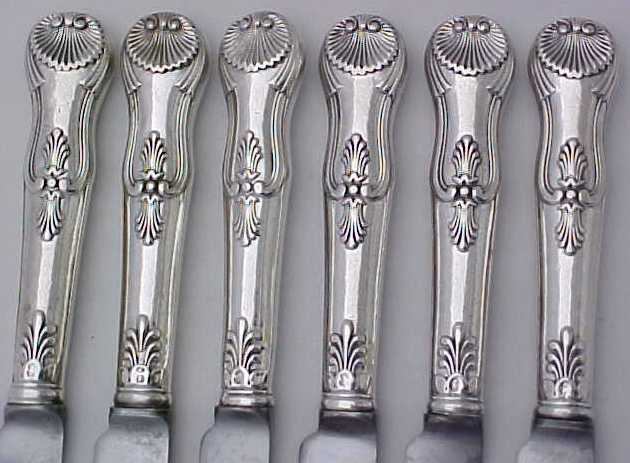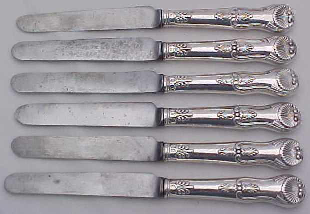 Good set of six Victorian silver handled knives with steel blades. |