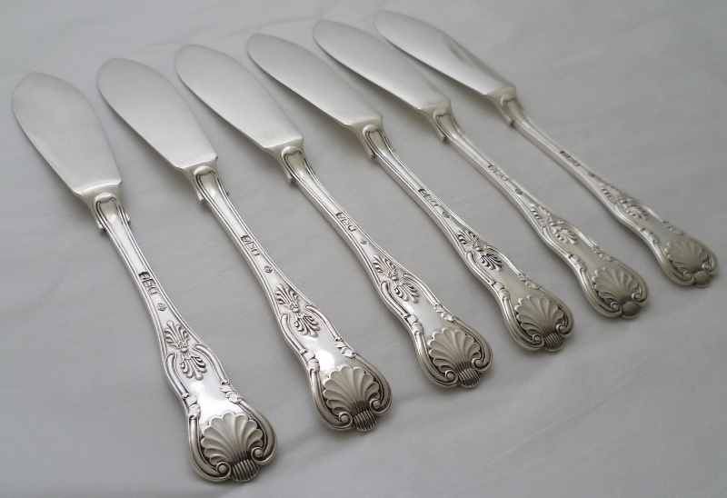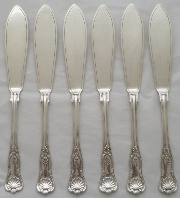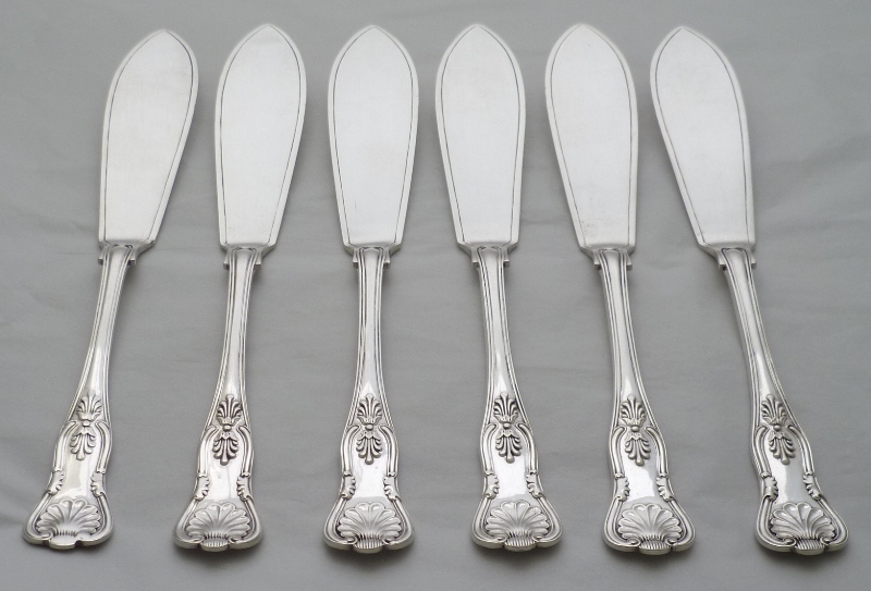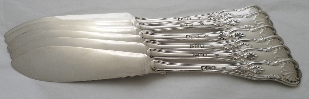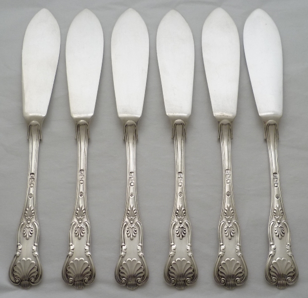 Good set of six Victorian solid silver double struck King's pattern fish knives. |