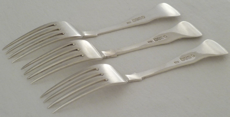 DESCRIPTION | Three Scottish Victorian silver single struck King's pattern dessert forks. |