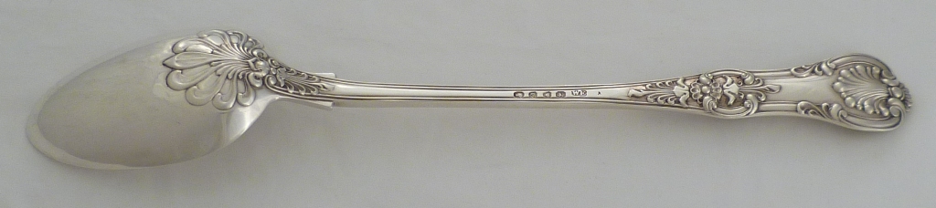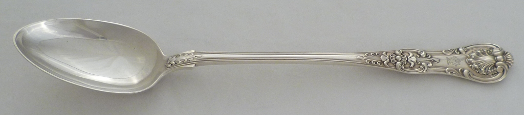 DESCRIPTION | Magnificent Victorian silver double struck Queen's pattern basting spoon with a good frontal crest engraving. Matching pieces are available. |