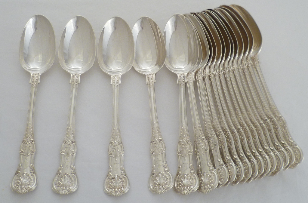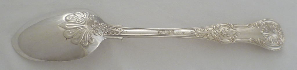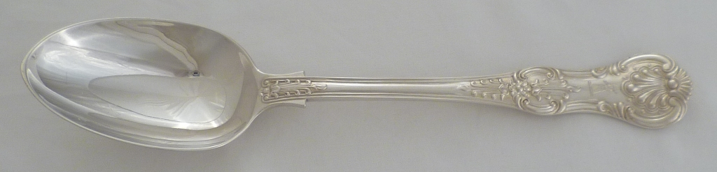 DESCRIPTION | ONE Victorian silver double struck Queen's pattern table spoon with a frontal crest engraving. |