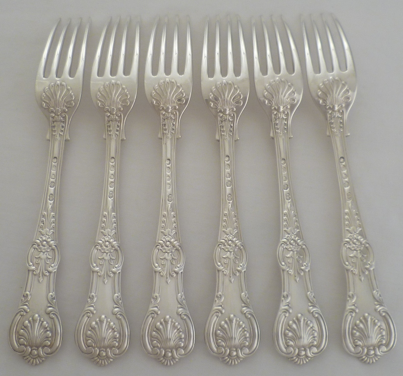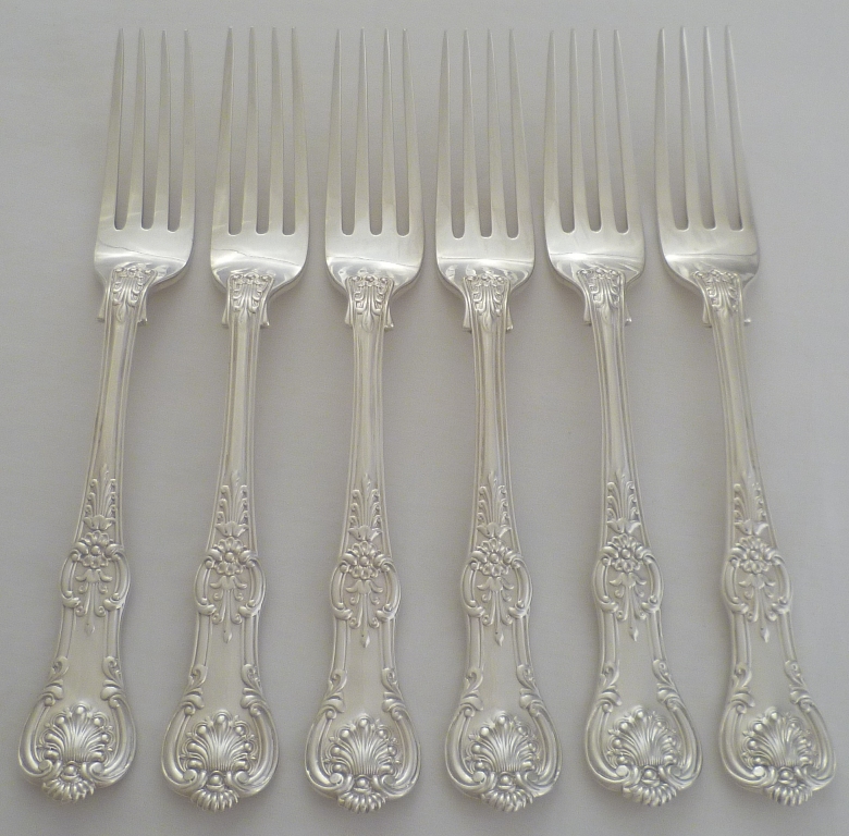 DESCRIPTION | Six Victorian silver double struck Queen's pattern table forks with no engraving. |