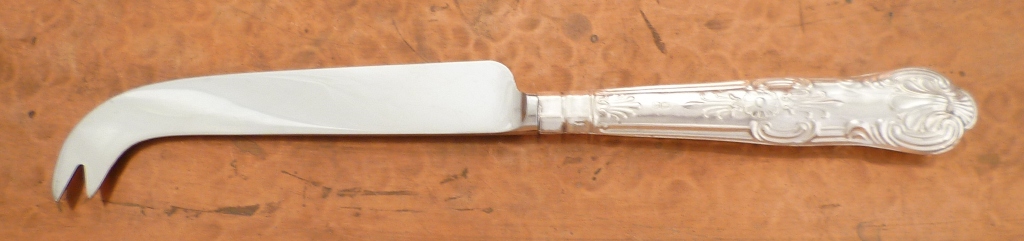 DESCRIPTION | Silver handled Queen's pattern cheese knife with no engraving and a mirror finish stainless steel blade. |